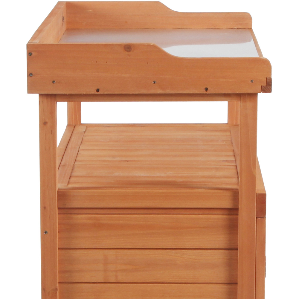 Make an awesome addition to your garden or backyard with the Outsunny Multi-Function Potting Bench. The garden potting bench has a workstation table, ideal for storing various tools and for completing your garden work. Made using fir wood and rust-resistant metal, the potting bench makes a perfect add-on for outdoors. Features a simple-to-use galvanised tabletop that is easy to clean. Apart from this, the storage cabinet below is divided into two levels to place your garden accessories and essentials.