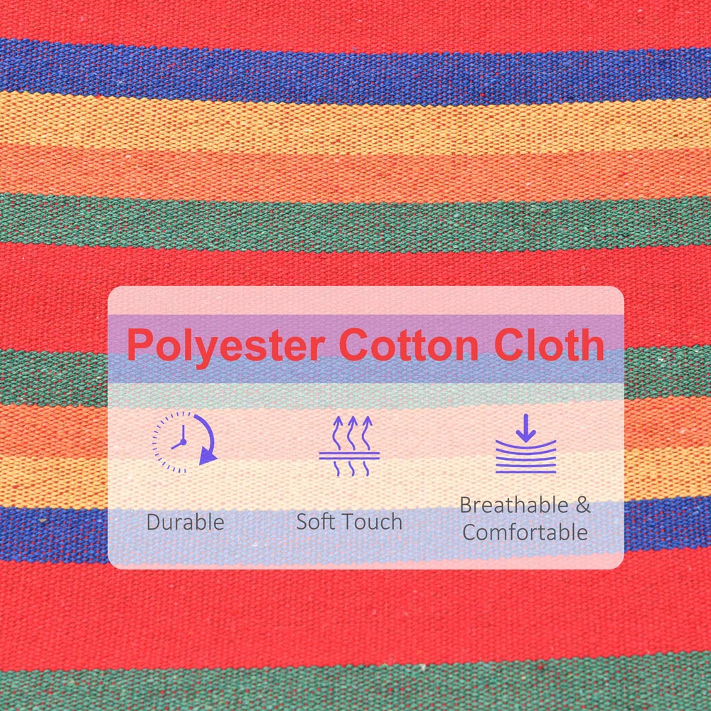 Make the most of the outside and relax comfortably for hours with this Outsunny Multicolour Hammock with Headrest. Made with a durable cotton and polyester blend, this bedroom hammock is designed to provide maximum comfort and sturdiness. With its vibrant multicoloured design, it's sure to add a touch of beauty to any outdoor space. The attached headrest and side pocket offer added convenience, while the hardwood spreader bars on each side provide extra stability and style. When you're ready to hit the road, this portable hammock is lightweight and easy to fold, so you can take it with you wherever you go. Don't miss out on the ultimate relaxation experience - order your string hammock today. Protect your garden furniture with our durable and waterproof covers. Explore our wide range of heavy-duty Garden Furniture covers to find the perfect fit for your needs.