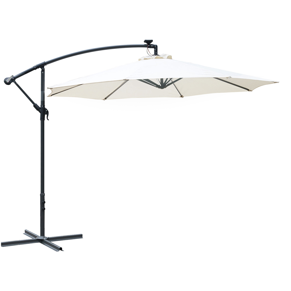 Outsunny Off White Solar LED Crank Handle Cantilever Banana Parasol 3m