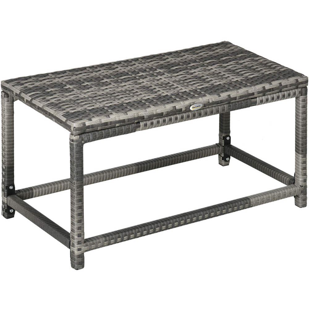 Enjoy a cup of coffee outdoors with Outsunny Grey Outdoor Coffee Table. Made from powder-coated metal for a strong structure - it also comes with an 'X' bar for extra support. The table top offers plenty of handy holding room. Featuring footpads to protect the floor - the maximum load that it can pick up is 30kg. Specifications: Color: black and mixed grey, Material: Galvanized Steel, PE Rattan, Overall Dimensions: 80L x 40W x 43Hcm. Weight Capacity: 30kg. Protect your garden furniture with our durable and waterproof covers. Explore our wide range of heavy-duty Garden Furniture covers to find the perfect fit for your needs.
