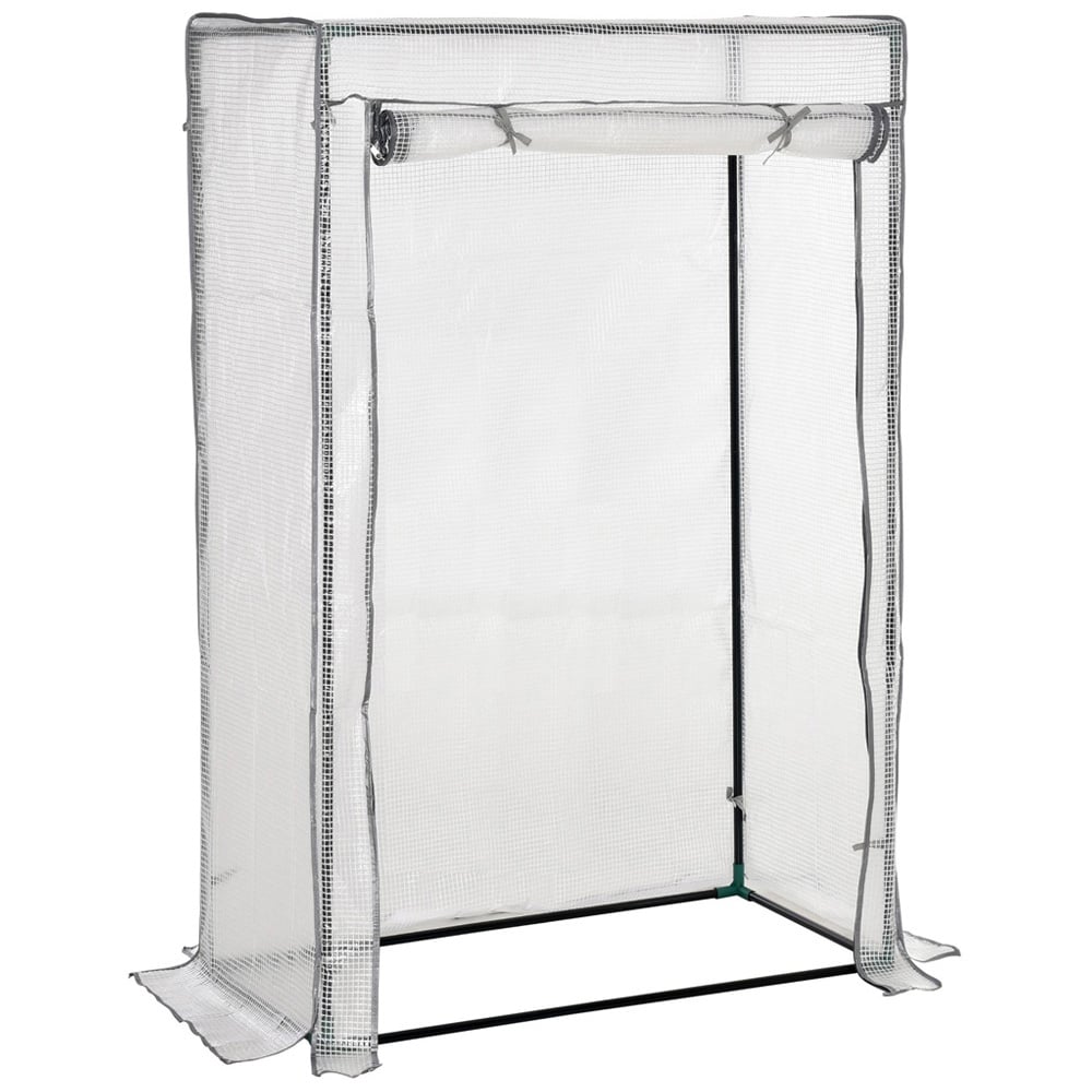 Gardening has no limitations with this mini greenhouse from Outsunny. The narrow and tall size is perfect for balconies and small outdoor spaces. With a sturdy steel frame and durable plastic cover, your plants will have a steady and protected place to grow. The plastic cover protects the inside from outside weather, such as mild wind, light rain and harsh sunlight, allowing plants to grow happily and healthily. 10cm extended edges are to be buried in the soil. It features a roll-up door for easy access in and out. Also allows fresh air inside for better growth. The miniature size lets you set it up almost anywhere. Ideal for growing tomatoes, flowers and other small batches of plants.