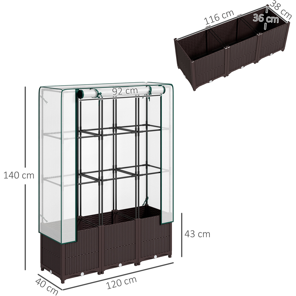 Discover the joys of gardening with the Outsunny Raised Garden Bed! This garden planter includes supportive trellises for your climbing plants and a PE cover to ensure the right humidity and temperature. Its roll-up zip design enhances airflow, making it an excellent choice for your flowers or vegetables. Plus, it's light enough to move to the desired spot in your garden oasis.