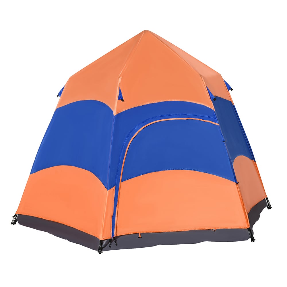 Accommodate yourself and others comfortably during camping trips, festival trips, hiking trips and more with this four-person tent by Outsunny. With a 190T water-resistant polyester cloth, flexible fibreglass poles and Oxford cloth on the floor for protection, the family tent comes with steel stakes and guy ropes to stabilize. Accommodating four adults or six kids comfortably, this pop-up tent for adults is finished with mesh windows for ventilation, two doors and two side storage pockets. The pop-up camping tent is ideal for first-timers and beginners. It takes the hassle and stress of setting up away. Perfect for camping with friends and family.