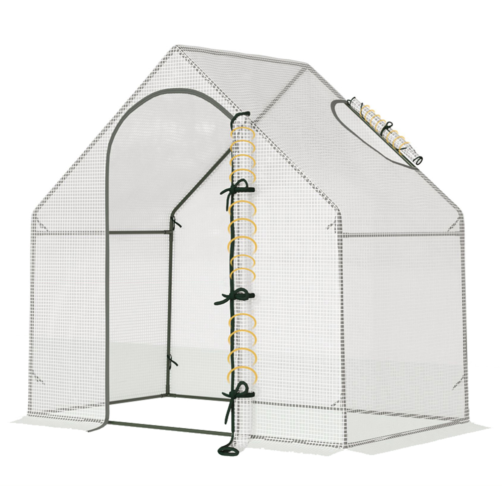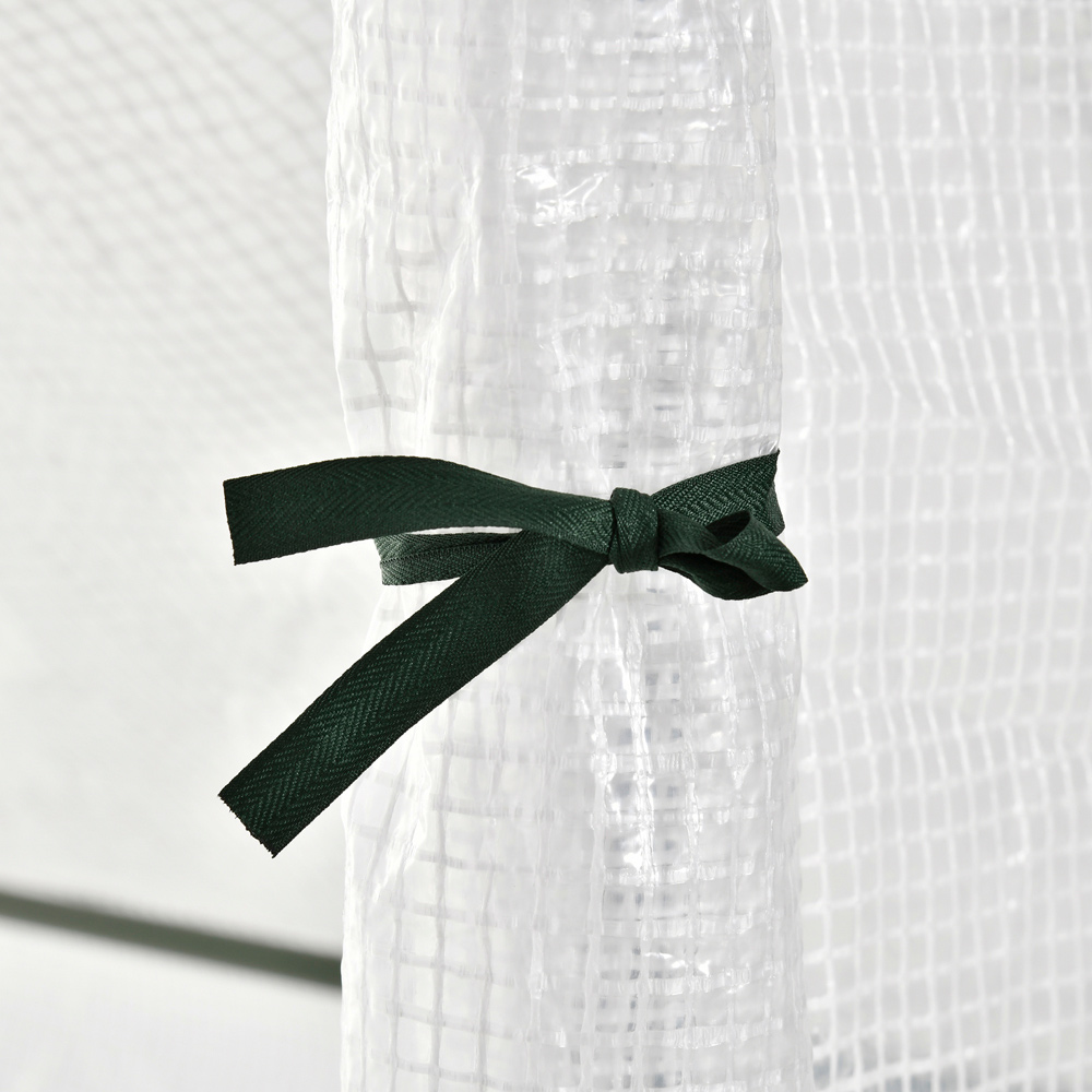 Whether it's early Spring or late Autumn, you'll be sure to grow plants, vegetables and more to their best with this greenhouse from Outsunny. It comes with a powder-coated steel frame for extra strength, with accessories included for extra stability. The steel frame makes it a solid structure which keeps in shape. Resistant to rust and corrosion. The large and fully open design gives you plenty of room to set up how you wish. It allows you to grow plants, vegetables and flowers in any suitable outdoor space. It features a door for easy access and a window for ventilation. The plastic cover protects the inside from light rain and mild wind and also creates a barrier between direct sunlight, allowing plants to grow without any interruptions. 10cm overlap to bury in the soil.