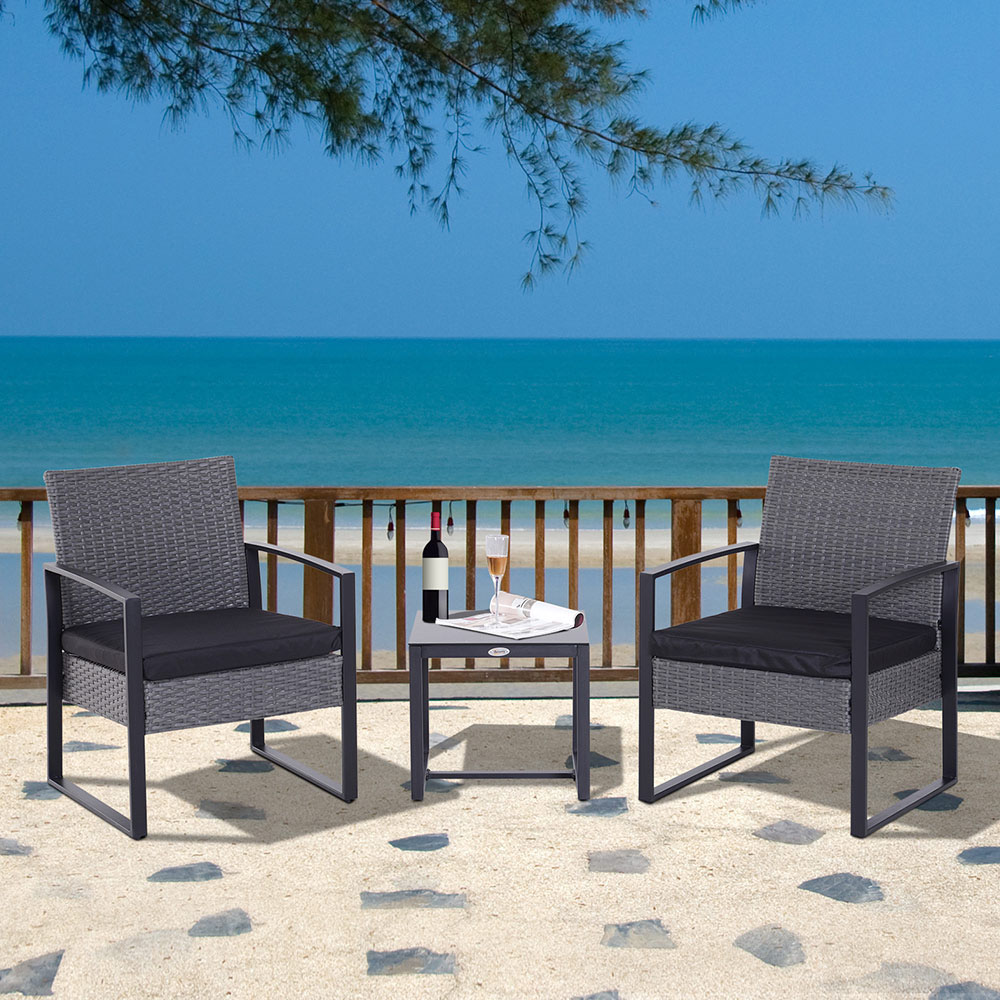 Outsunny Rattan 3 PCs Bistro Set Grey
