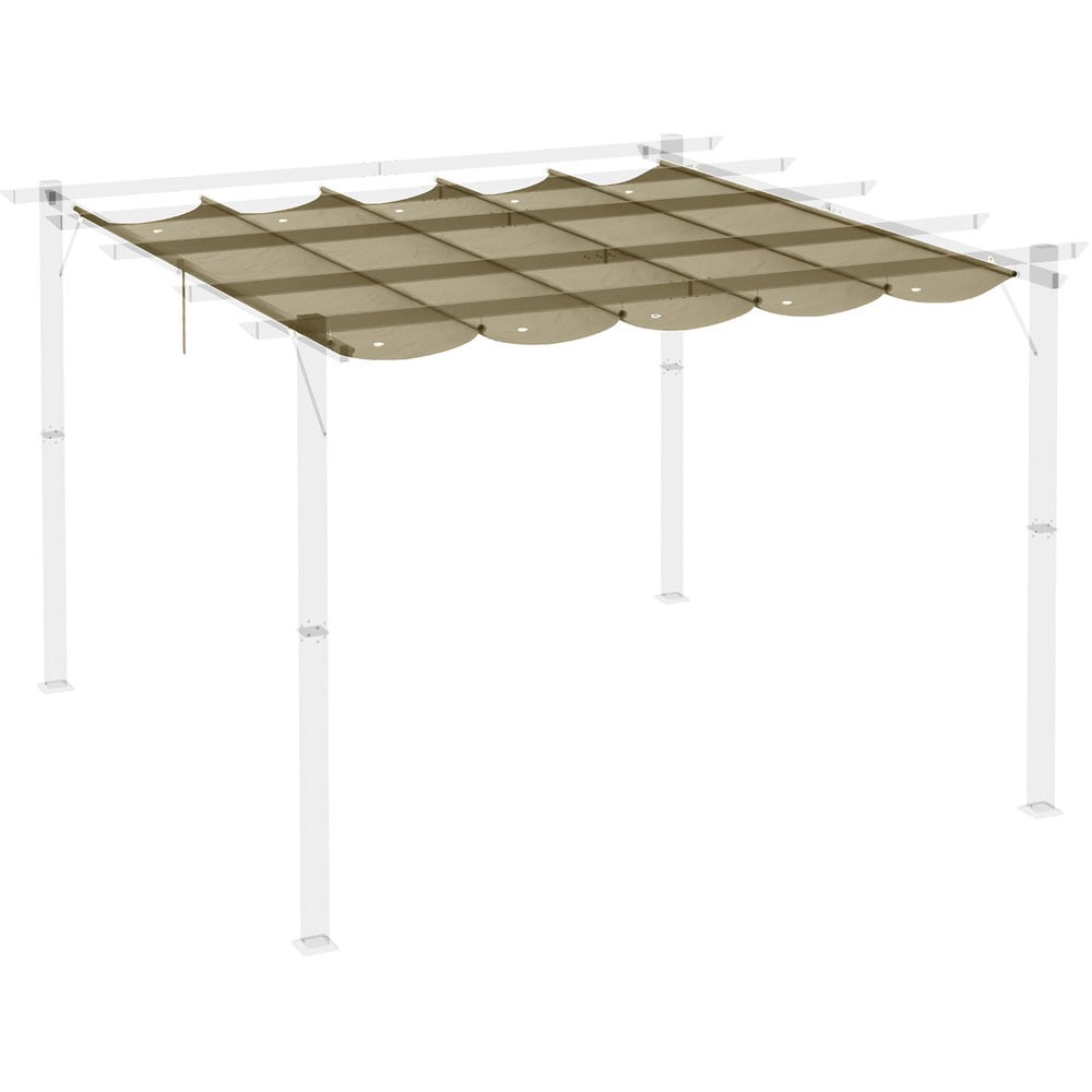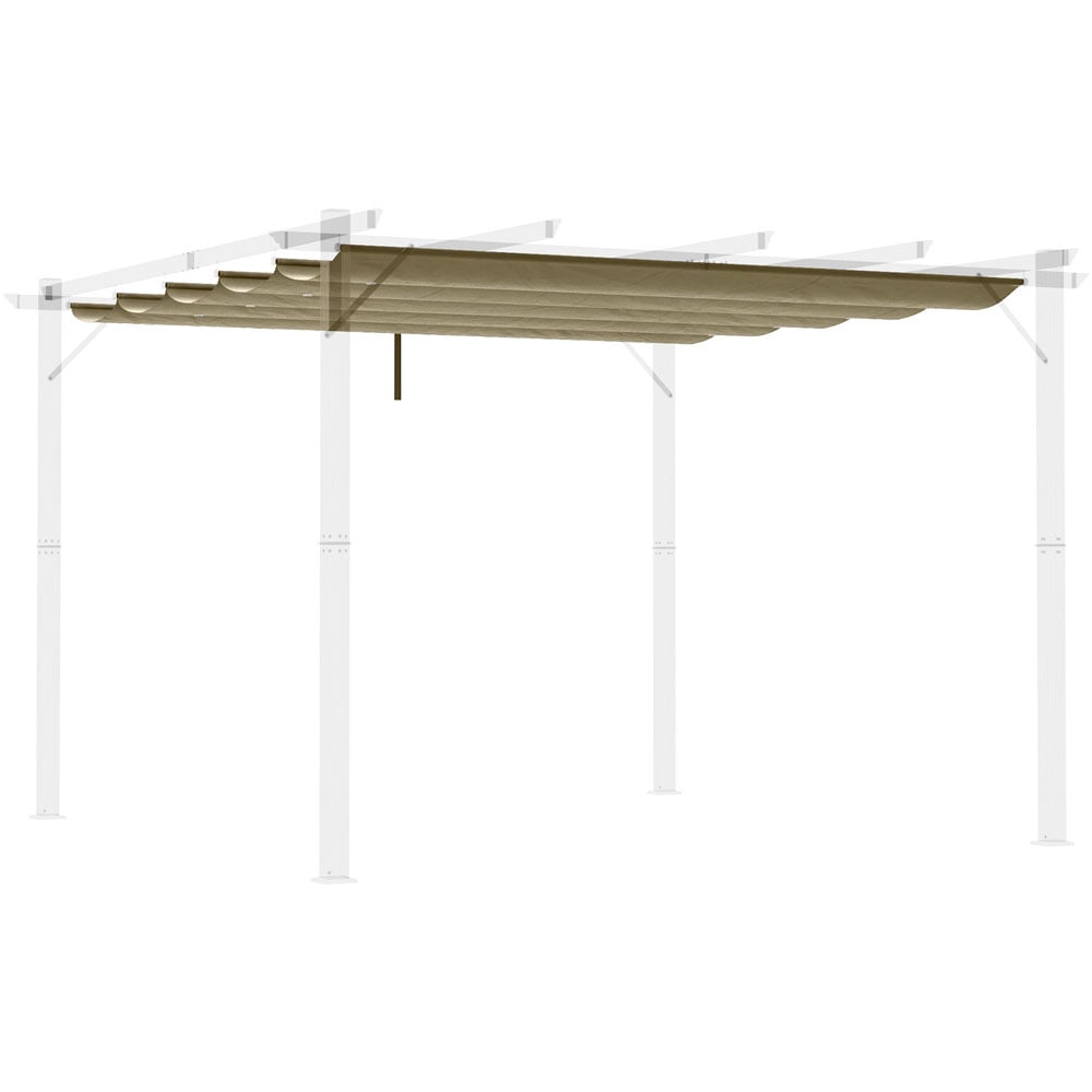 Create a contemporary outdoor structure that provides space for family gatherings with Outsunny Tan Retractable Pergola Cover. Made from PA-coated polyester - it protects your party space from sunshade. It can be easily installed or removed for storage. The canopy replacement also has ten rain-draining holes, to drain excess water and prevent accumulation. This canopy cover replacement can protect you from the sun and provide shade. The breathable fabric allows a cool breeze to pass through. Specifications: Colour: dark grey, Material: Polyester, Overall Dimensions: 250L x 255Wcm, Canopy specification: The replacement canopy can ONLY FIT Outsunny 3 x 3 (m) pergola. Note: Please verify the size and model of your gazebo before purchasing.