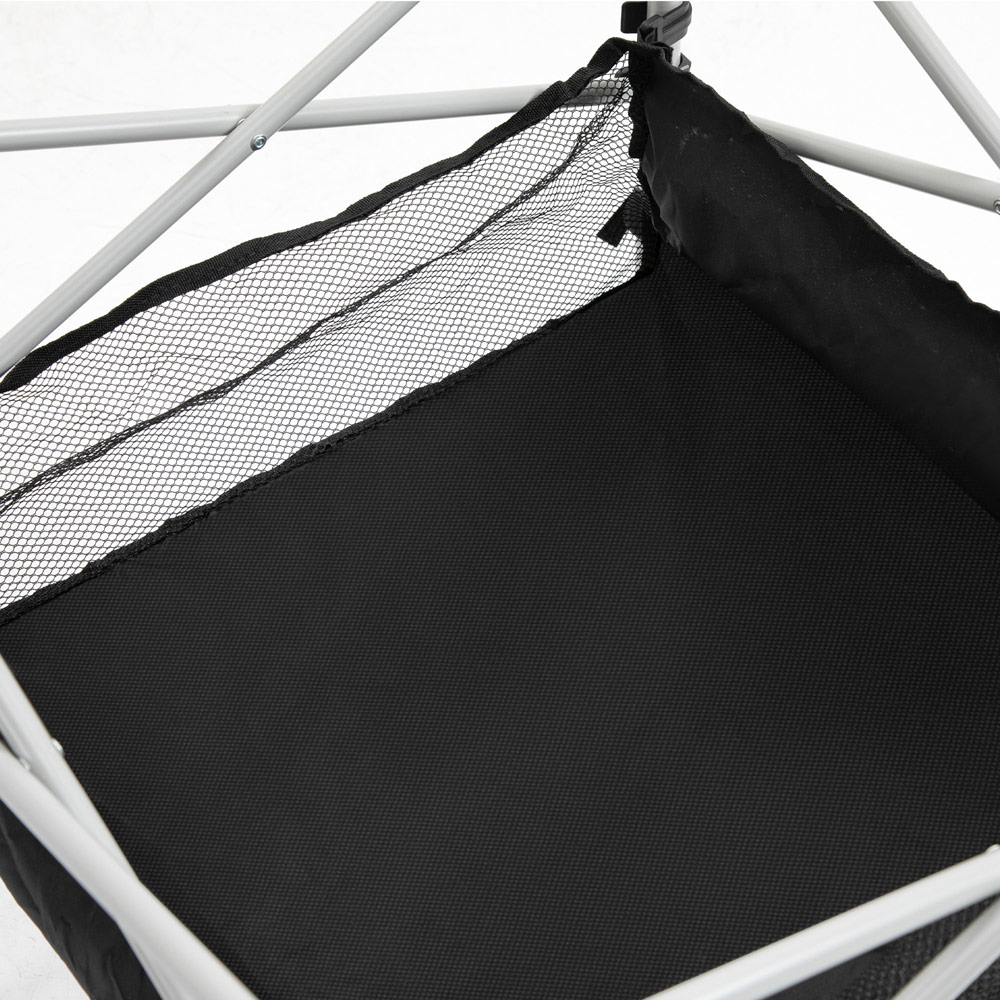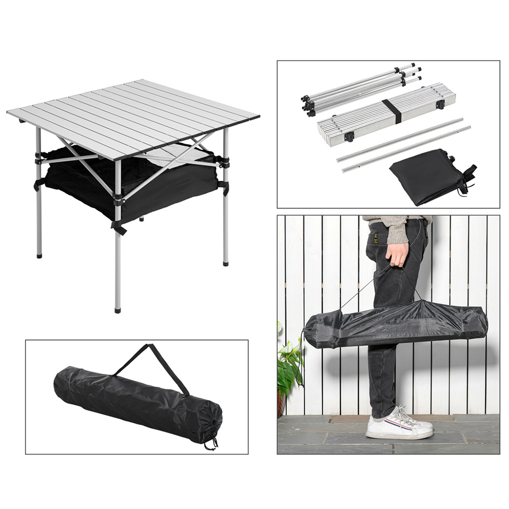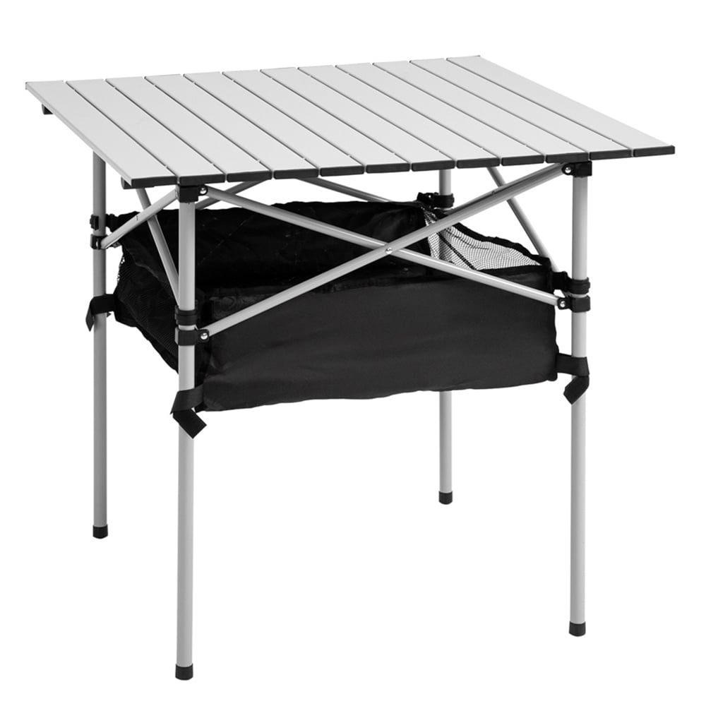 Bring cool innovation into your everyday outdoor life and special trips with this Roll Top Mesh Camping Table from Outsunny. The design combines a small folding table with a mesh storage bag underneath, meaning you can dine and keep everything you need to be stored right underneath. The bag can also be used as a temporary bin, preventing rubbish build-up when you're camping. Featuring a powder-coated steel frame for extra strength, it also has a roll-up aluminium top which detaches easily and packs away easily. The lightweight, portable table doesn't weigh you down when carrying, plus, it's weather-resistant and easy to clean for added convenience.