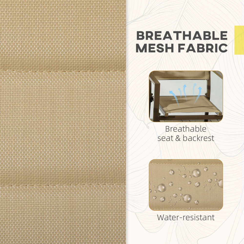Redefine your outdoor seating space with the Outsunny Set of 2 Beige Aluminium Stackable Garden Chairs. These chairs boast powder-coated aluminium frames that provide a robust and sturdy foundation, ensuring excellent support. The chairs feature water-resistant, breathable mesh fabric and are finished with non-slip foot pads. With high backs and arms, they offer exceptional support for your upper body, making them perfect for long hours of sitting. You can rely on the aluminium frames for a strong and supportive core that can withstand daily wear and tear. Moreover, these chairs can be stacked on top of each other when not in use, making them perfect for those who want to save space. Each set includes two chairs. Protect your garden furniture with our durable and waterproof covers. Explore our wide range of heavy-duty Garden Furniture covers to find the perfect fit for your needs.