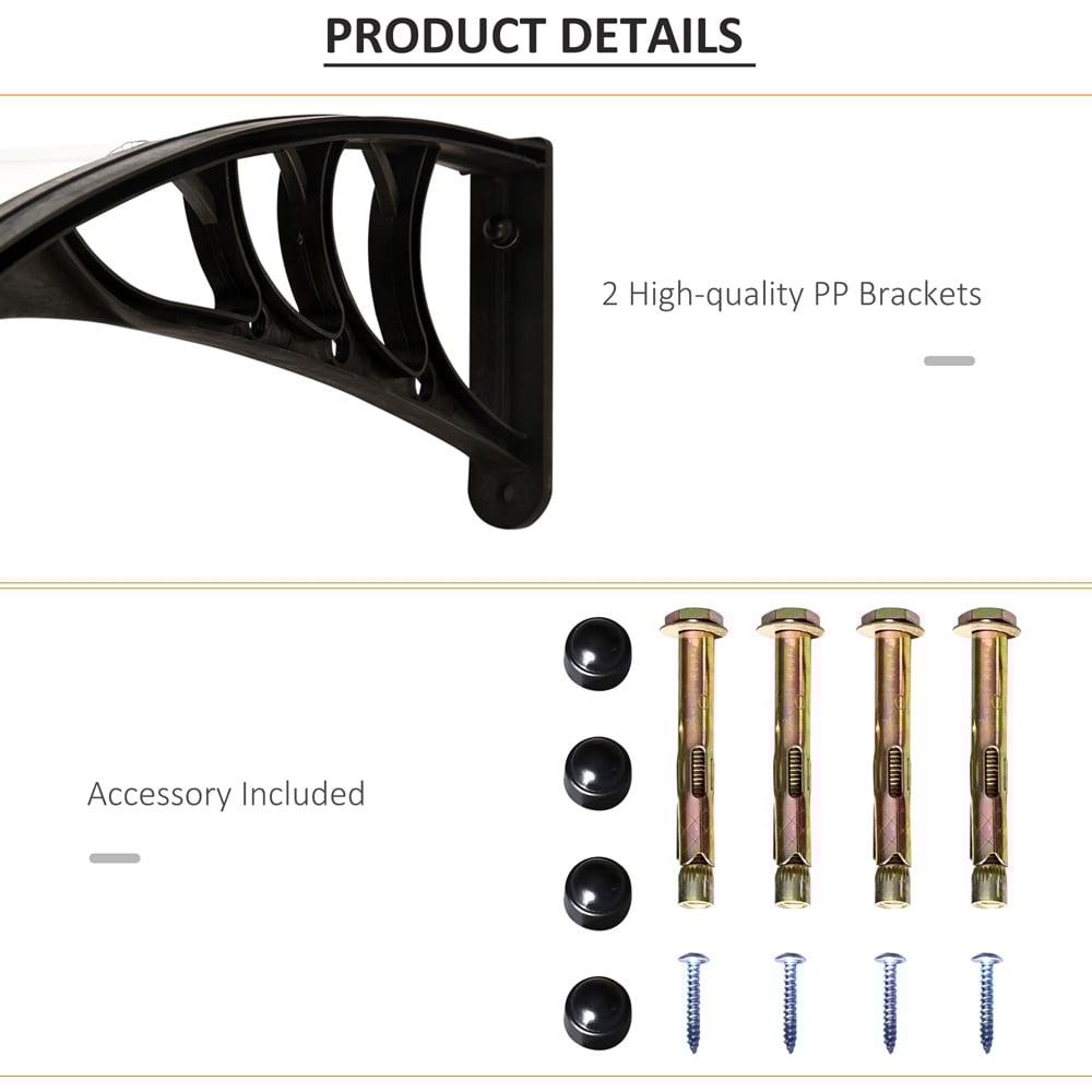 Bring shelter and shade outside your doors and windows with this porch awning from Outsunny. Using a thick and rigid plastic frame, with lightweight and durable aluminium bars connecting the two ends, the porch canopy is fitted with a polycarbonate sheet in the middle. The door canopies are covered with UV-resistant coating to protect them from the sun and UV rays. Simple in design to blend in with all outdoor areas, it can be solo or even paired with multiple canopies to create a broader scope of protection.
