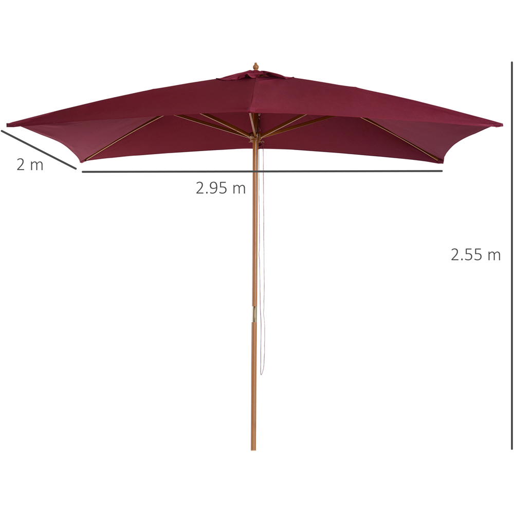 Outsunny Wine Red Wooden Parasol 3 x 2m