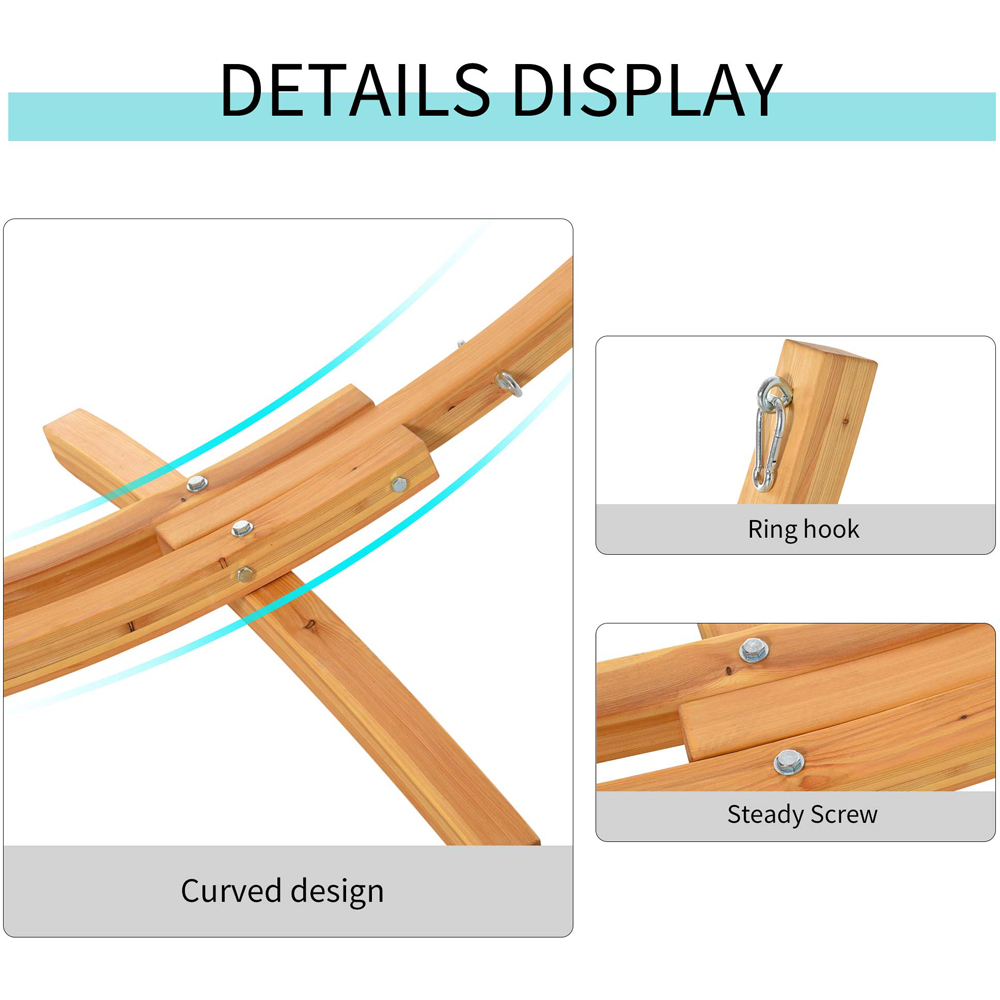 Hang your hammock anywhere with this Outsunny Wooden Hammock Stand. With this unique stand, you no longer need to find a tree to hang your favourite hammock. Featuring a unique modern shape, the curved arc hammock stand provides the perfect aesthetic to your outdoor living space. Stable and durable, this wooden stand is perfect for a balcony, garden, courtyard, porch, bedroom, living room or other areas. Plus, this stand is applicable for hammocks within 3m in length. Protect your garden furniture with our durable and waterproof covers. Explore our wide range of heavy-duty Garden Furniture covers to find the perfect fit for your needs.