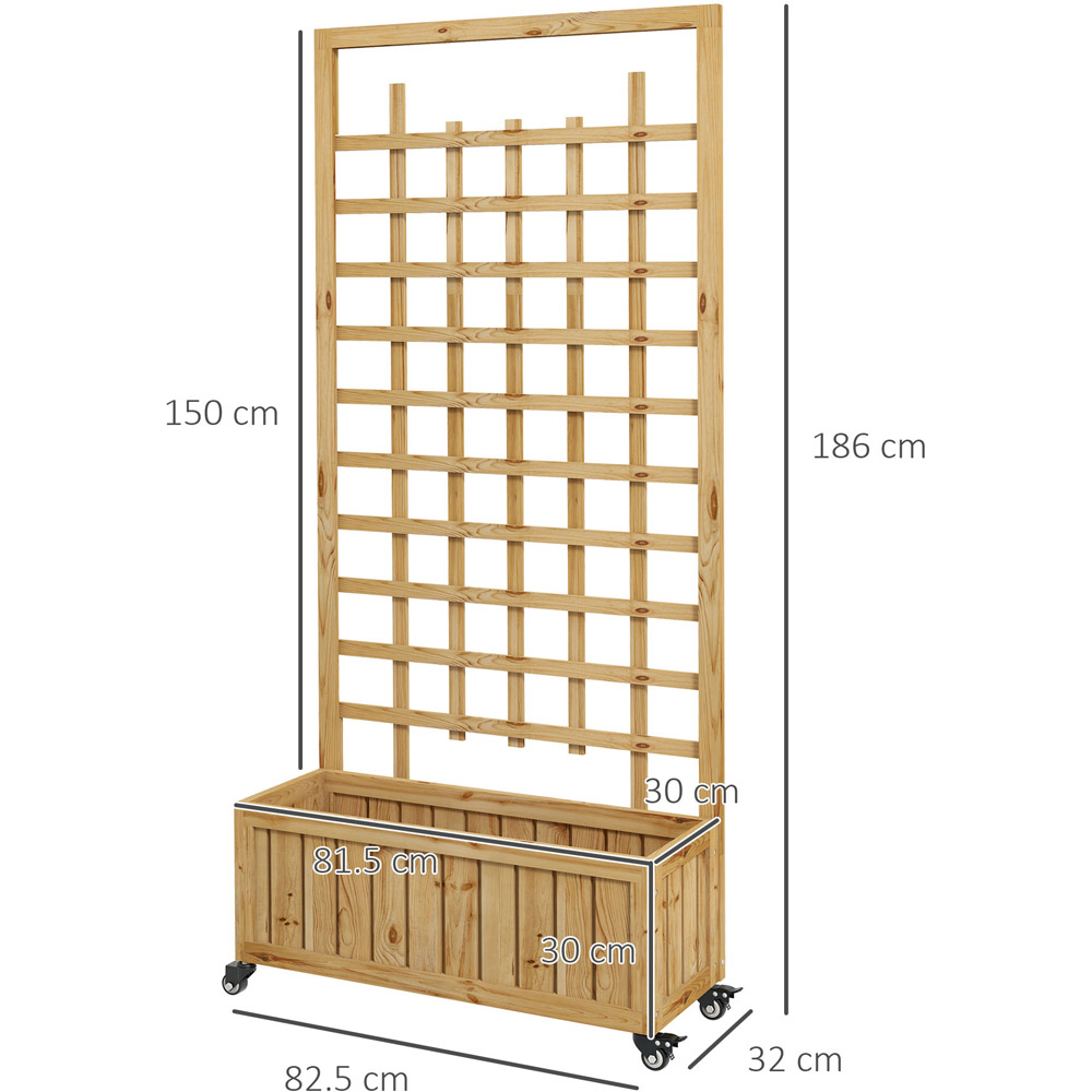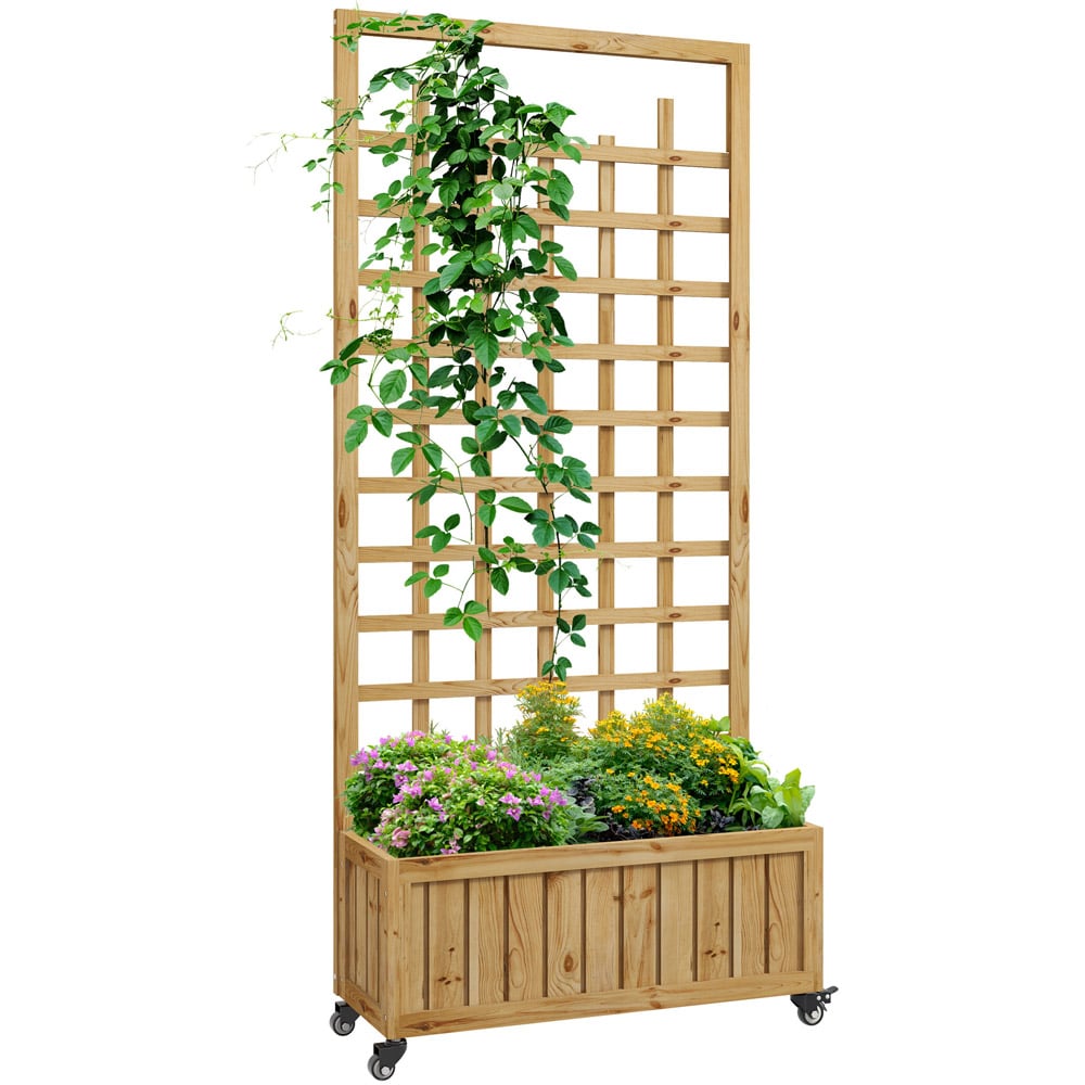 Elevate your green space effortlessly with this Outsunny Wooden Raised Garden Bed Trellis Planter with Wheels and Bed Liner. This 2-in-1 design combines a raised bed with a trellis, allowing you to grow climbing plants and flowers in one duo piece. Plus, with four wheels, it's easy to move the wooden planter around your yard without disturbing your greenery. And when you want it to stay put, just engage the two brakes. The garden bed liner is made of non-woven material that prevents dirt from falling through while still allowing water to drain, keeping the raised planter in excellent condition.