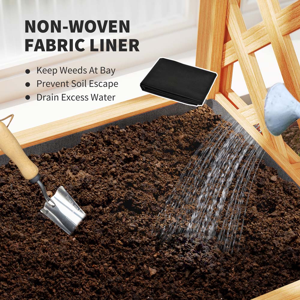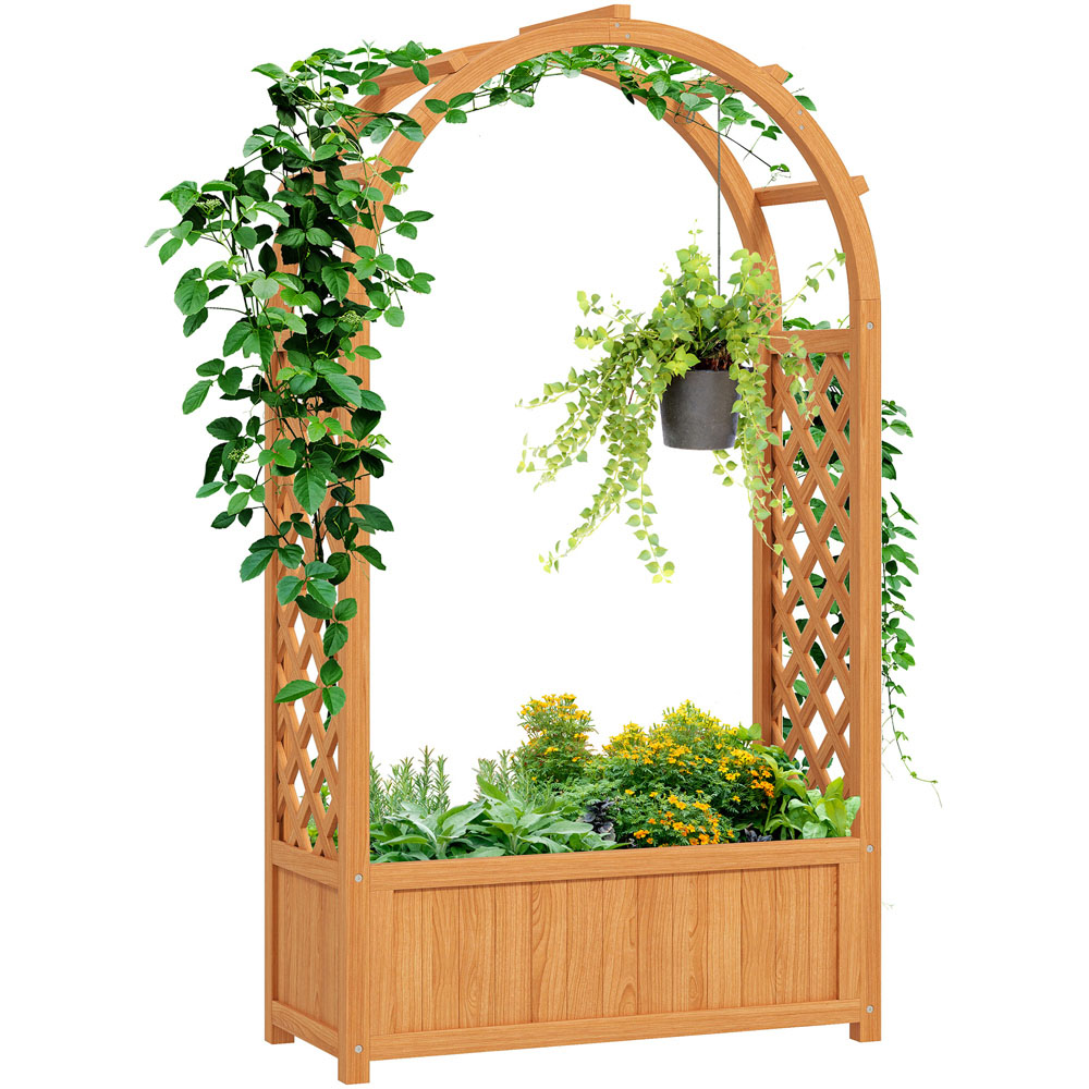 Transform your garden into a blooming haven with the Outsunny vegetable planter. This raised bed features dual drain holes and a fabric liner to enhance root growth and keep weeds at bay. Crafted from natural fir wood with a safe, waterproof coating, it includes side and arch trellises for your climbing plants, making it a charming addition to any patio or balcony.