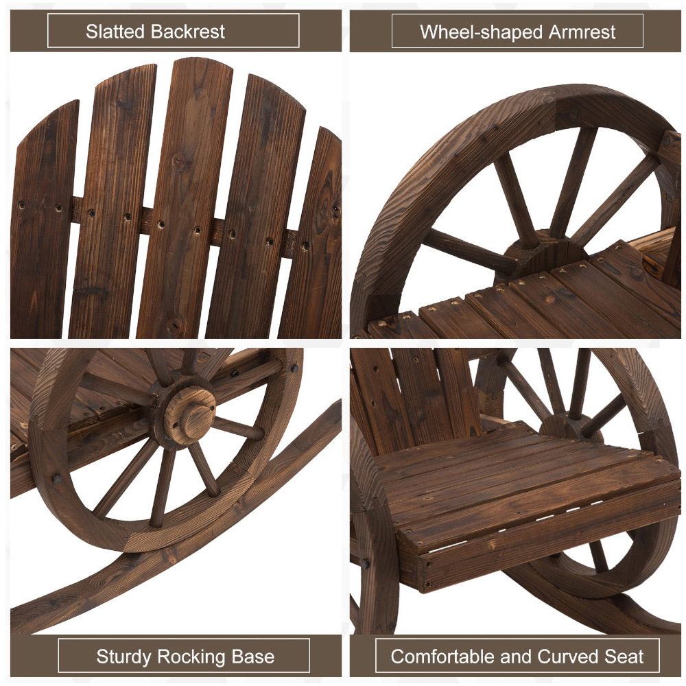 If you're looking to give your garden something completely different and unique, then opt for this garden rocking chair wooden from Outsunny. The patio rocking chair, made using solid fir wood for strength and durability, is crafted into a design which mimics an old rocking chair. A burnt brown finish gives the garden rocking chairs a touch of rustic charm which only gets better with age. Slatted all over to prevent water build-up. Smoothly curved, this outdoor rocking chair can sway back and forth gently – a great way to relax outdoors and in your garden. A wide seat paired with a high back and slightly curved seat make this rocking chair perfect for sitting on for long periods of time. It has a large decorative wheel on each side. The rocking garden chair is a piece to charm and intrigue anyone who comes over to visit. This traditional style piece will surely add interest and intrigue to your garden. Protect your garden furniture with our durable and waterproof covers. Explore our wide range of heavy-duty Garden Furniture covers to find the perfect fit for your needs.