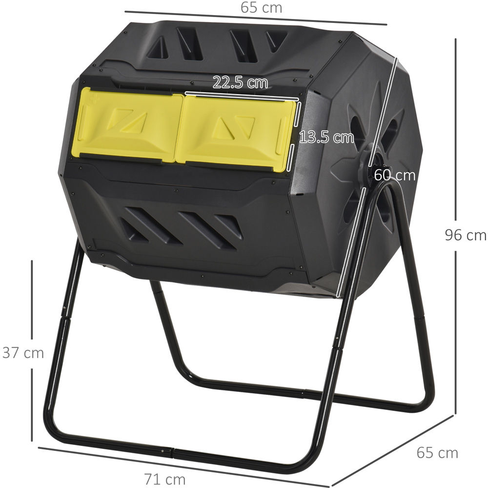 Outsunny Yellow Dual Chamber Outdoor Tumbling Compost Bin 160L