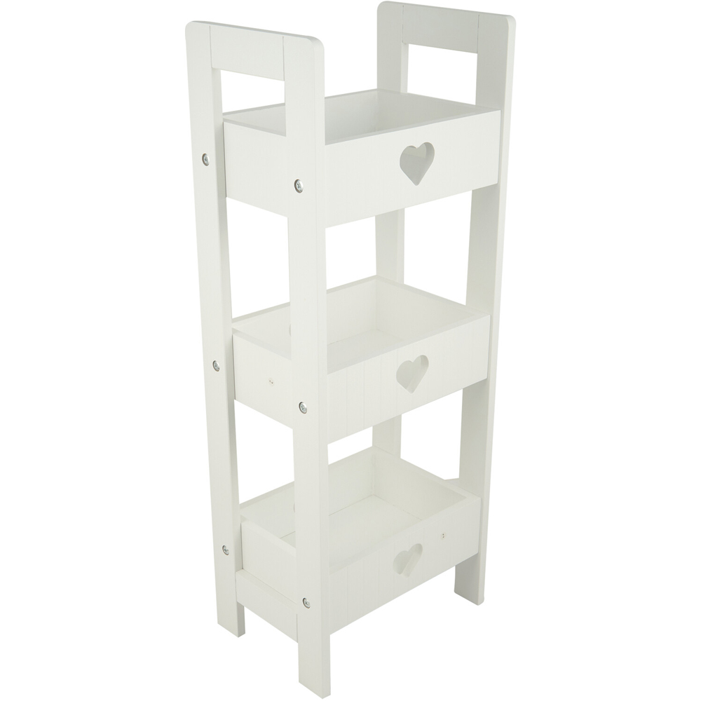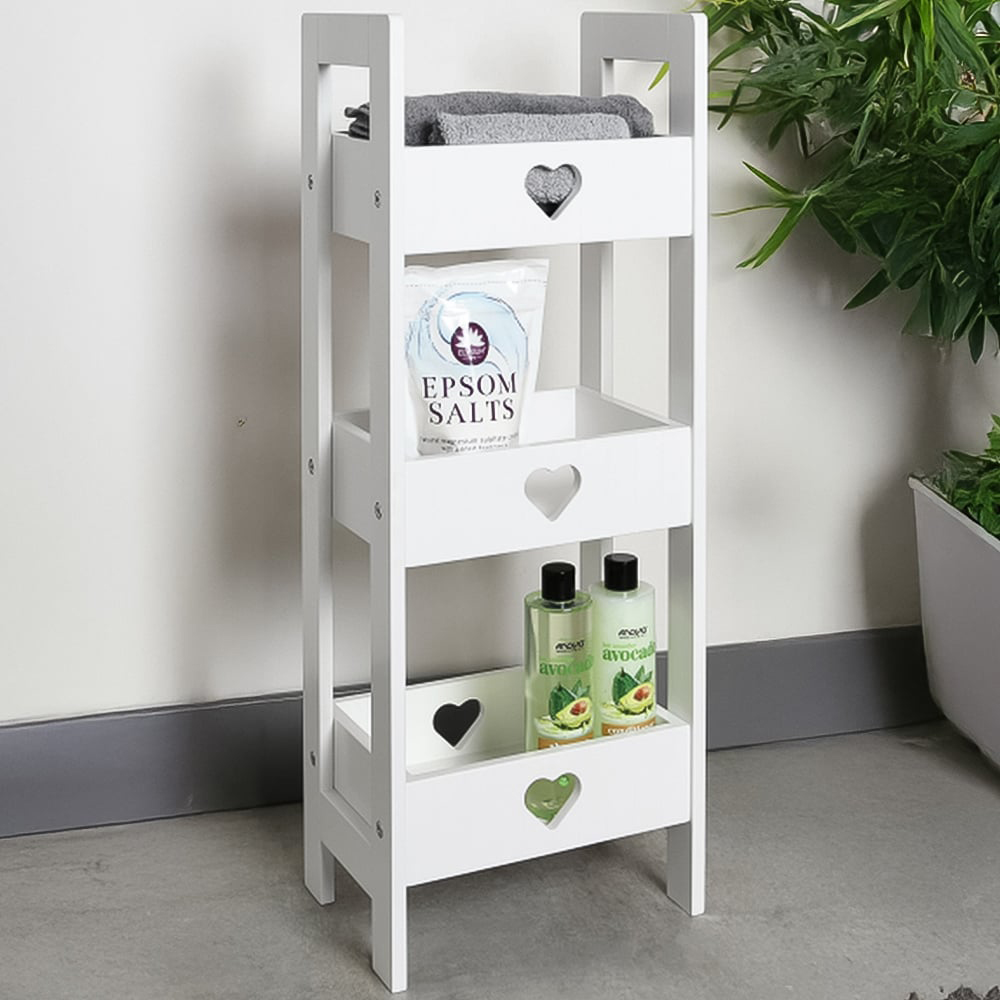 Organise your bathroom space with this Oxford 3 Tier Heart Caddy. With three shelves, this storage caddy is perfect for keeping toiletries, hand towels, shampoos, body showers and other grooming essentials. Finished in white, it will easily fit in any bathroom decor. Adorable and trendy, the caddy also features cute heart cutouts for added style.