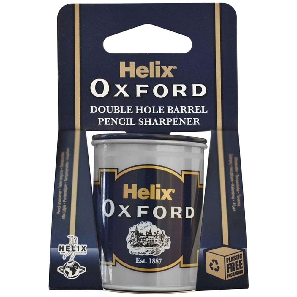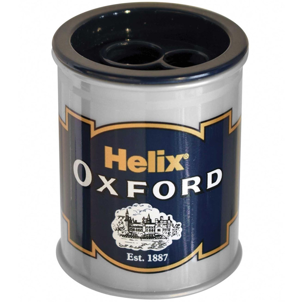Perfect for artists, colouring fans, and those sitting exams, this Oxford Metal Barrel Sharpener is ideal for any pencil. Featuring a double hole top with different sizes, this sharpener has a large capacity canister to collect shavings so you don't have to keep getting up to the bin! Suitable for standard and jumbo size pencils, the sharpener has durable metal blades for long-lasting use and is a wonderful addition to any pencilcase.