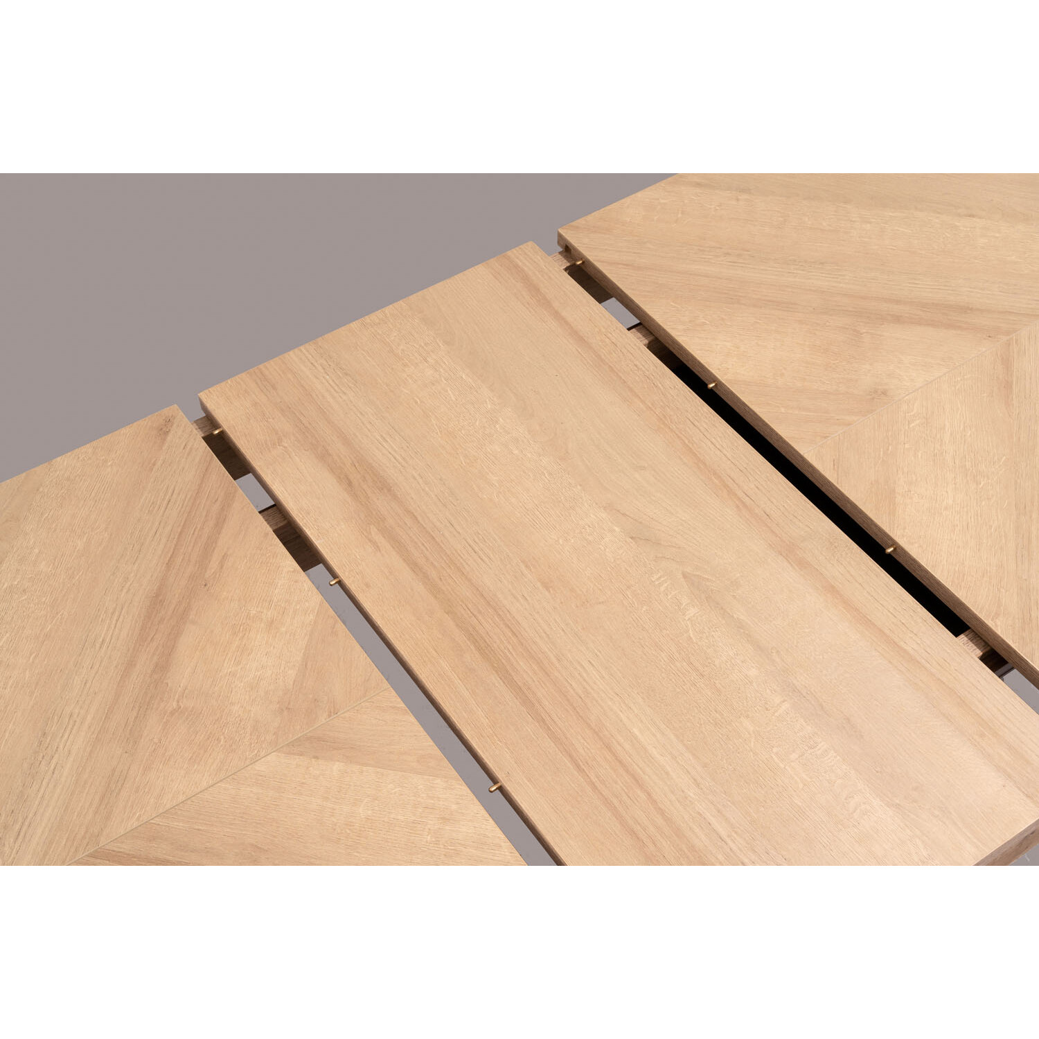 This stylish Oxford Parquet Extending Table is the perfect dining table for any home. Its on-trend parquet top finish will be a feature for your dining and living areas. This sleek and modern table with a classic edge can be easily extended to provide more room for extra guests for your convenience. It has a gorgeous light wood tone for a rustic feel that matches any decor and will help you to dine in style, whether you're having dinner with family or hosting a dinner party.