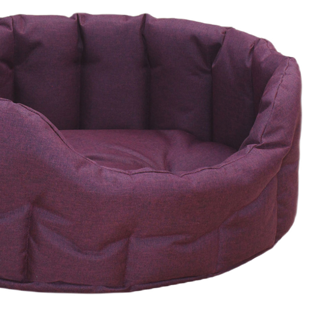 Give your beloved dog a comfortable and luxurious place to sleep with P&L Jumbo Red Oval Waterproof Dog Bed. This heavy-duty oval waterproof drop-fronted soft bed is the ideal dog bed for Country Dogs who get wet and dirty on a regular basis. The bed is covered in a heavy-duty, hard-wearing, 100% polyester waterproof material treated with a water-repellent coating, which is easy to keep clean. Brush off loose dirt, wipe with a wet cloth and then rinse under a running tap/hose or a low setting on a pressure washer. It's designed to keep your pet warm and comfortable. The thick base cushion (removable for easy separate cleaning) and the high walls of this bed are filled with bonded Thermal Polyester Fibre to insulate your pet from the cold floor and keep it out of draughts. Available in three sizes and seven colourways. Size: Medium H22 x W51 x L61cm / Base Cushion 7cm thickness. Size: Large H24 x W64cm x L76cm / Base Cushion 8cm thickness. Size: Jumbo H25 x W74 x L90cm / Base Cushion 8cm thickness. (All measurements given are Internal and subject to slight variations due to the manufacturing process).