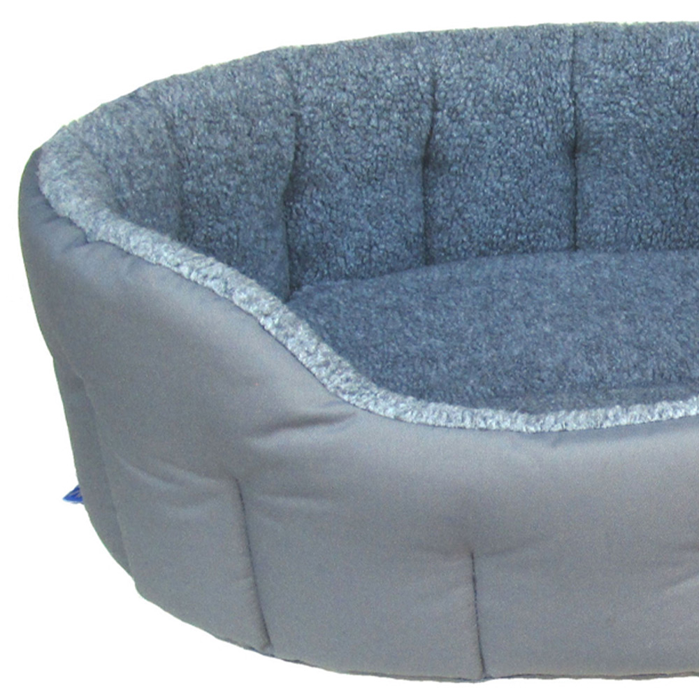 P&L Large Grey Premium oval drop-fronted bolster-style dog bed is designed to provide comfortable and luxurious sleep for your dog. The outer material is hard-wearing 100% polyester, and the inner lining is a Soft Sherpa Fleece designed to keep your pet warm and comfortable. The thick base cushion, which is removable and the high walls of this bed are filled with bonded Thermal Non-Clumping Polyester Fibre to insulate your dog from the cold floor and keep it out of draughts. The P&L dog bed is designed and manufactured to be fully machine washable, keeping shape after washing. Available in three sizes. Size Intermediate H20 x W41 x L51cm / Base Cushion 7cm thickness. Size Medium H22 x W51 x L61cm / Base Cushion 7cm thickness. Size Large H24 x W64 x L76cm / Base Cushion 8cm thickness. Size Jumbo H25 x W74 x L90cm /Base Cushion 8cm thickness. All measurements given are Internal and subject to slight variations due to the manufacturing process.