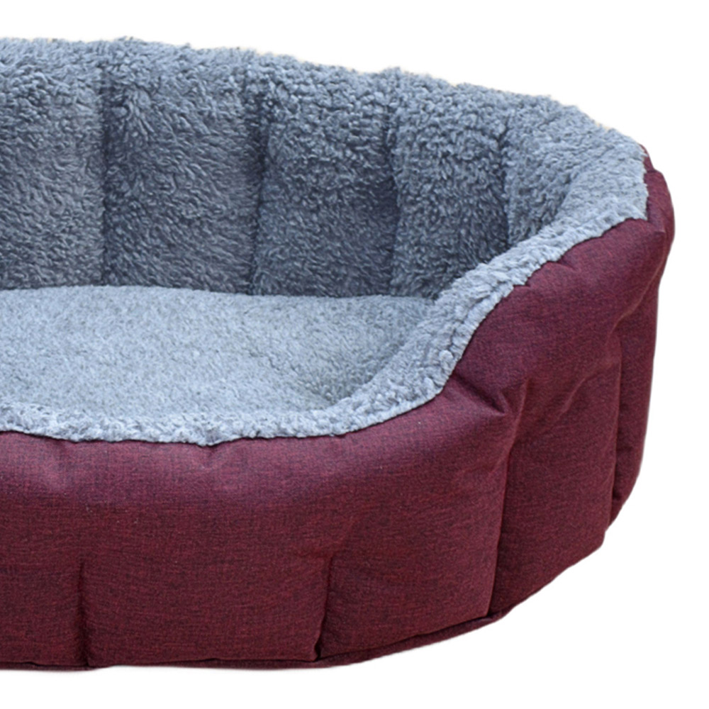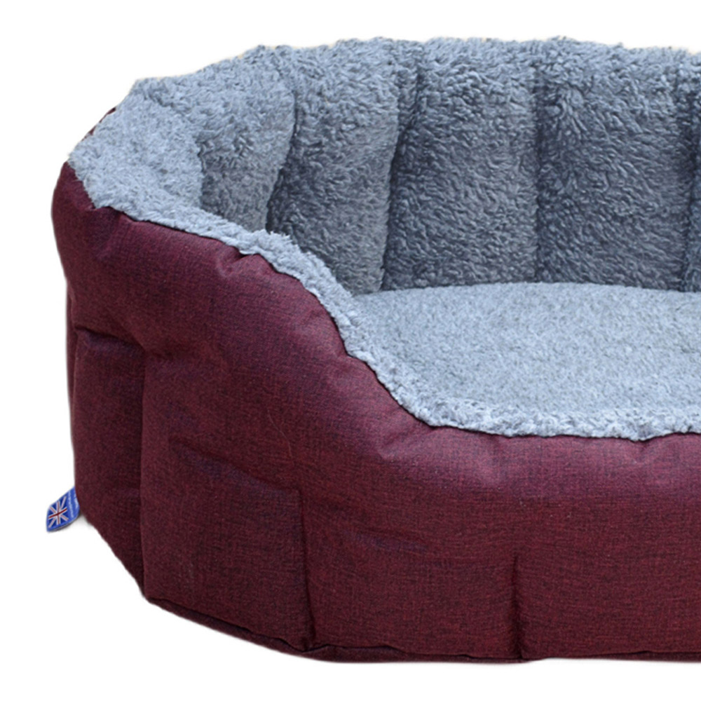 P&L Large Red Premium oval drop-fronted bolster-style dog bed is designed to provide comfortable and luxurious sleep for your dog. The outer material is hard-wearing 100% polyester, and the inner lining is a Soft Sherpa Fleece designed to keep your pet warm and comfortable. The thick base cushion, which is removable and the high walls of this bed are filled with bonded Thermal Non-Clumping Polyester Fibre to insulate your dog from the cold floor and keep it out of draughts. The P&L dog bed is designed and manufactured to be fully machine washable, keeping shape after washing. Available in three sizes. Size Intermediate H20 x W41 x L51cm / Base Cushion 7cm thickness. Size Medium H22 x W51 x L61cm / Base Cushion 7cm thickness. Size Large H24 x W64 x L76cm / Base Cushion 8cm thickness. Size Jumbo H25 x W74 x L90cm /Base Cushion 8cm thickness. All measurements given are Internal and subject to slight variations due to the manufacturing process.