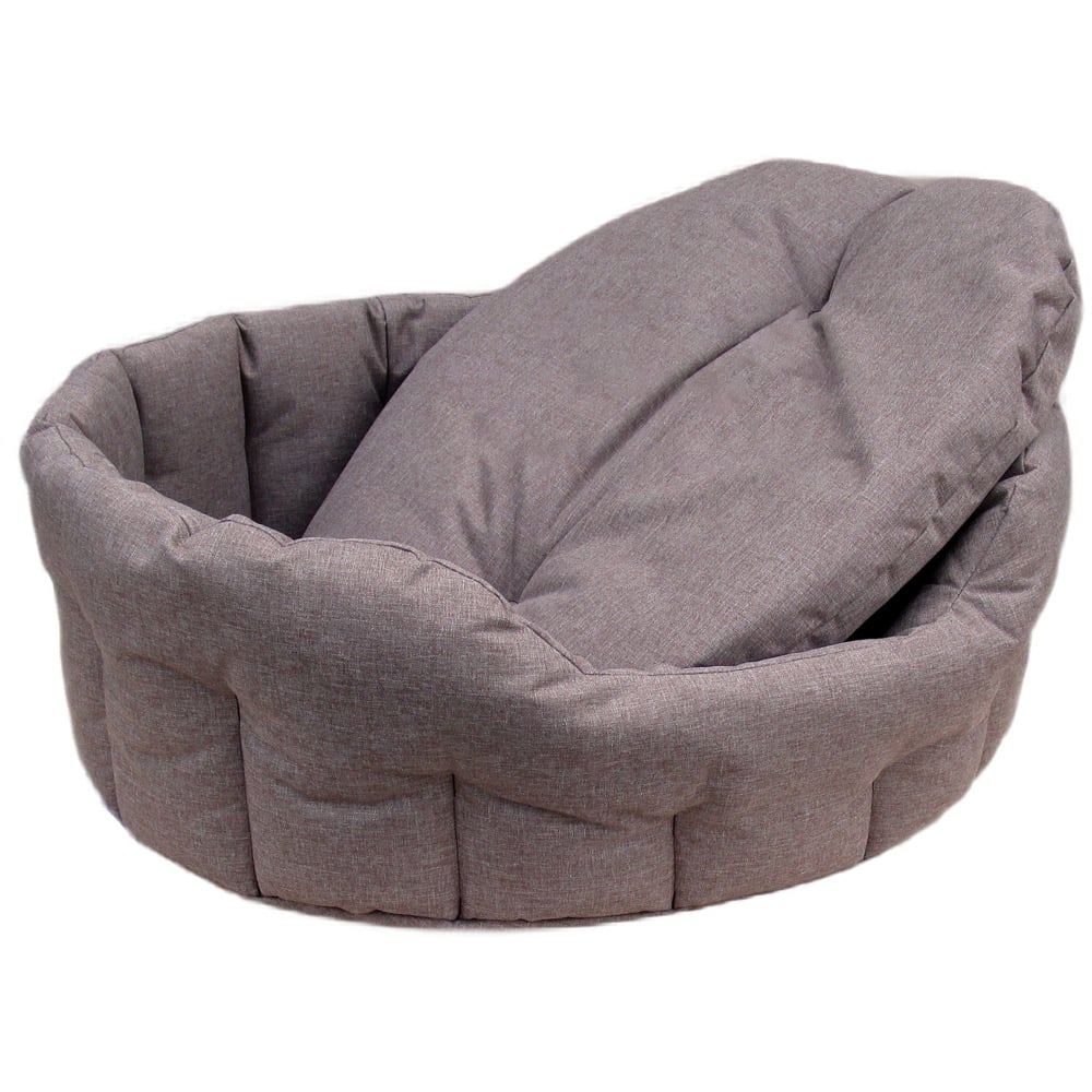 Give your beloved dog a comfortable and luxurious place to sleep with P&L Medium Brown Oval Waterproof Dog Bed. This heavy-duty oval waterproof drop-fronted soft bed is the ideal dog bed for Country Dogs who get wet and dirty on a regular basis. The bed is covered in a heavy-duty, hard-wearing, 100% polyester waterproof material treated with a water-repellent coating, which is easy to keep clean. Brush off loose dirt, wipe with a wet cloth and then rinse under a running tap/hose or a low setting on a pressure washer. It's designed to keep your pet warm and comfortable. The thick base cushion (removable for easy separate cleaning) and the high walls of this bed are filled with bonded Thermal Polyester Fibre to insulate your pet from the cold floor and keep it out of draughts. Available in three sizes and seven colourways. Size: Medium H22 x W51 x L61cm / Base Cushion 7cm thickness. Size: Large H24 x W64cm x L76cm / Base Cushion 8cm thickness. Size: Jumbo H25 x W74 x L90cm / Base Cushion 8cm thickness. (All measurements given are Internal and subject to slight variations due to the manufacturing process).