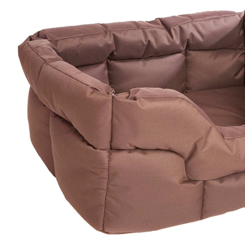 P&L XL Brown Heavy Duty Dog Bed is designed to provide comfortable and luxurious sleep for your dog. This heavy-duty rectangular waterproof drop-fronted softee bed is ideal for country dogs who regularly get wet and dirty. The bed is covered in a heavy-duty hard wearing 100% polyester waterproof material, treated with a water-repellent coating, which is easy to keep clean, brush off loose dirt, wipe with a wet cloth and then rinse under a running tap/hose or even a low setting on a pressure washer. The P&L dog bed is designed to keep your pet warm and comfortable. The thick base cushion (removable for easy separate cleaning) and the high walls of this bed are filled with bonded Thermal Polyester Fibre to insulate your pet from the cold floor and keep it out of draughts. Available in three sizes and six Colourways. Size Medium H24 x W47 x L57cm / Base Cushion 8cm thickness. Size Large H27 x W60 x L75cm / Base Cushion 8cm thickness. Size Jumbo H35 x W72 x L88cm / Base Cushion 8cm thickness. All measurements given are Internal and subject to slight variations due to the manufacturing process.