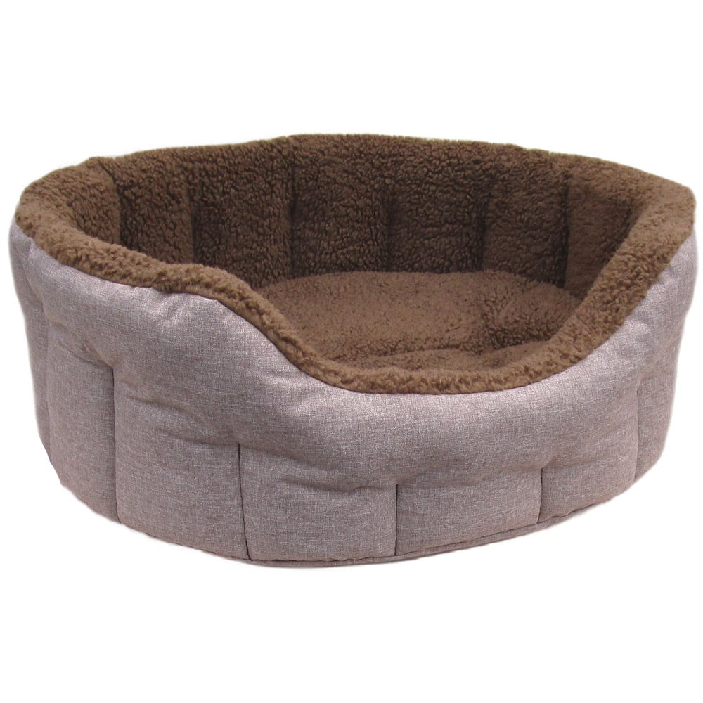 P&L XL Brown Premium oval drop-fronted bolster-style dog bed is designed to provide comfortable and luxurious sleep for your dog. The outer material is hard-wearing 100% polyester, and the inner lining is a Soft Sherpa Fleece designed to keep your pet warm and comfortable. The thick base cushion, which is removable and the high walls of this bed are filled with bonded Thermal Non-Clumping Polyester Fibre to insulate your dog from the cold floor and keep it out of draughts. The P&L dog bed is designed and manufactured to be fully machine washable, keeping shape after washing. Available in three sizes. Size Intermediate H20 x W41 x L51cm / Base Cushion 7cm thickness. Size Medium H22 x W51 x L61cm / Base Cushion 7cm thickness. Size Large H24 x W64 x L76cm / Base Cushion 8cm thickness. Size Jumbo H25 x W74 x L90cm /Base Cushion 8cm thickness. All measurements given are Internal and subject to slight variations due to the manufacturing process.