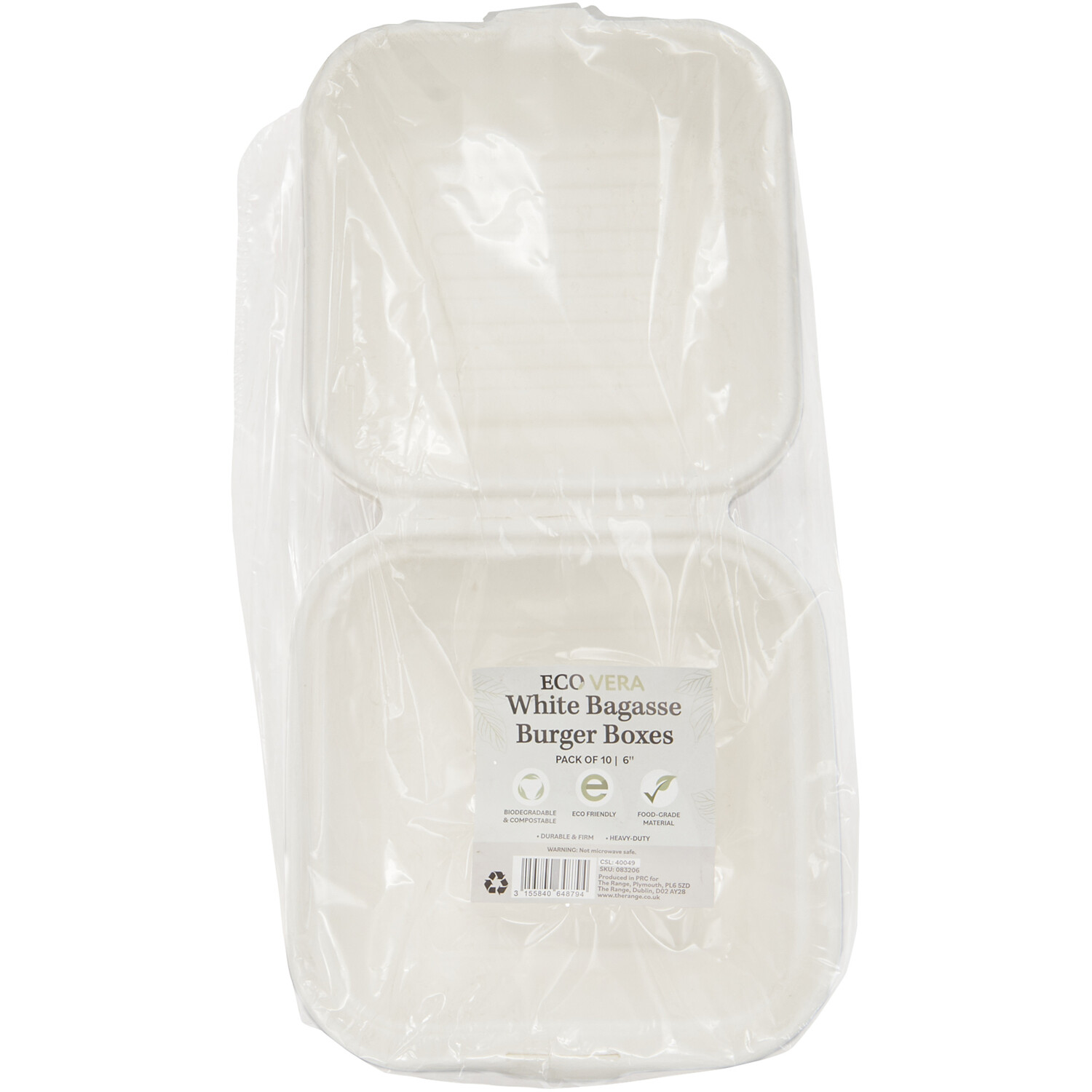 This Pack of 10 Bagasse Burger Boxes are ideal for BBQs and parties. The burger boxes can be used to serve delicious burgers to guests with a novelty, takeaway feel or for bringing back leftovers. The boxes are biodegradable and compostable, eco-friendly, and are made from food-grade materials, so you can be confident you're doing good when using them. Heavy-duty, they're a must for your event.