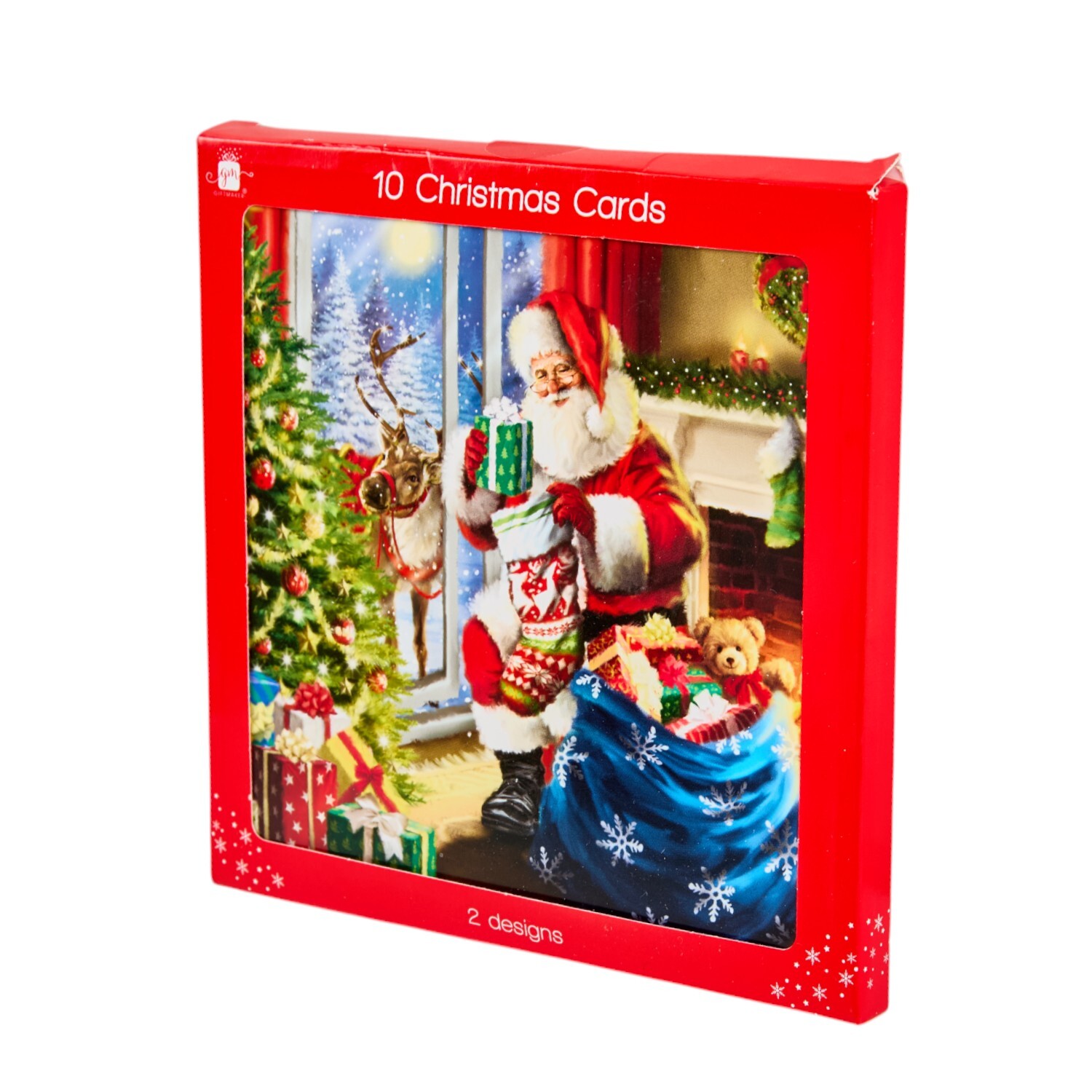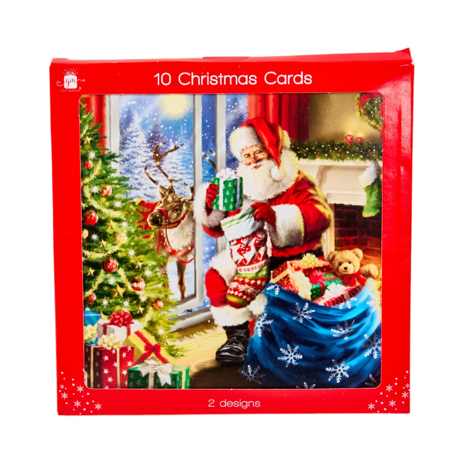 Bring holiday charm to your Christmas greetings with this Pack of 10 Traditional Santa Cards. With two vibrant, attractive Santa designs included, these cards capture the nostalgia and warmth of the festive season. Ready to add your personal message, the cards come complete with matching envelopes for an elegant finish. Perfectly festive and full of cheer, they are perfect for sending to family, friends, colleagues or anyone special.