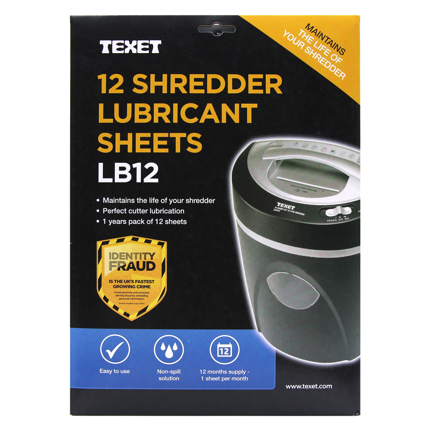 These Texet Lubricating Sheets maintains the health of your shredder and offers perfect cutter lubrication. Easy to use, it has a non-spill solution and features a year's supply in one pack.