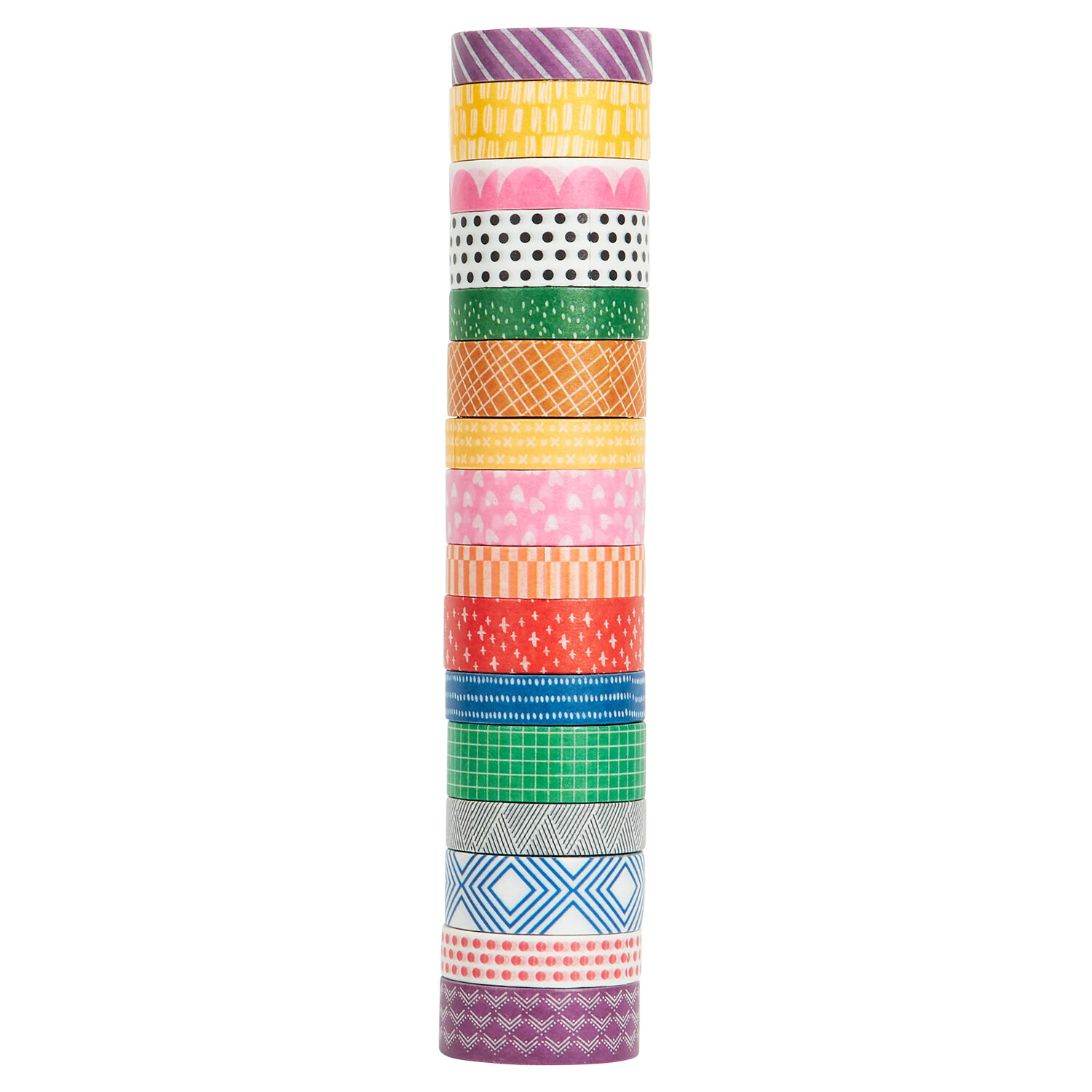 Enhance your craft projects with the Pack of 16 Printed Washi Tape. Available in an assortment of styles, these washi tapes showcase bright and fun colours and patterns, making them excellent for decorating cards, scrapbooks, bullet journals, gifts, and more.