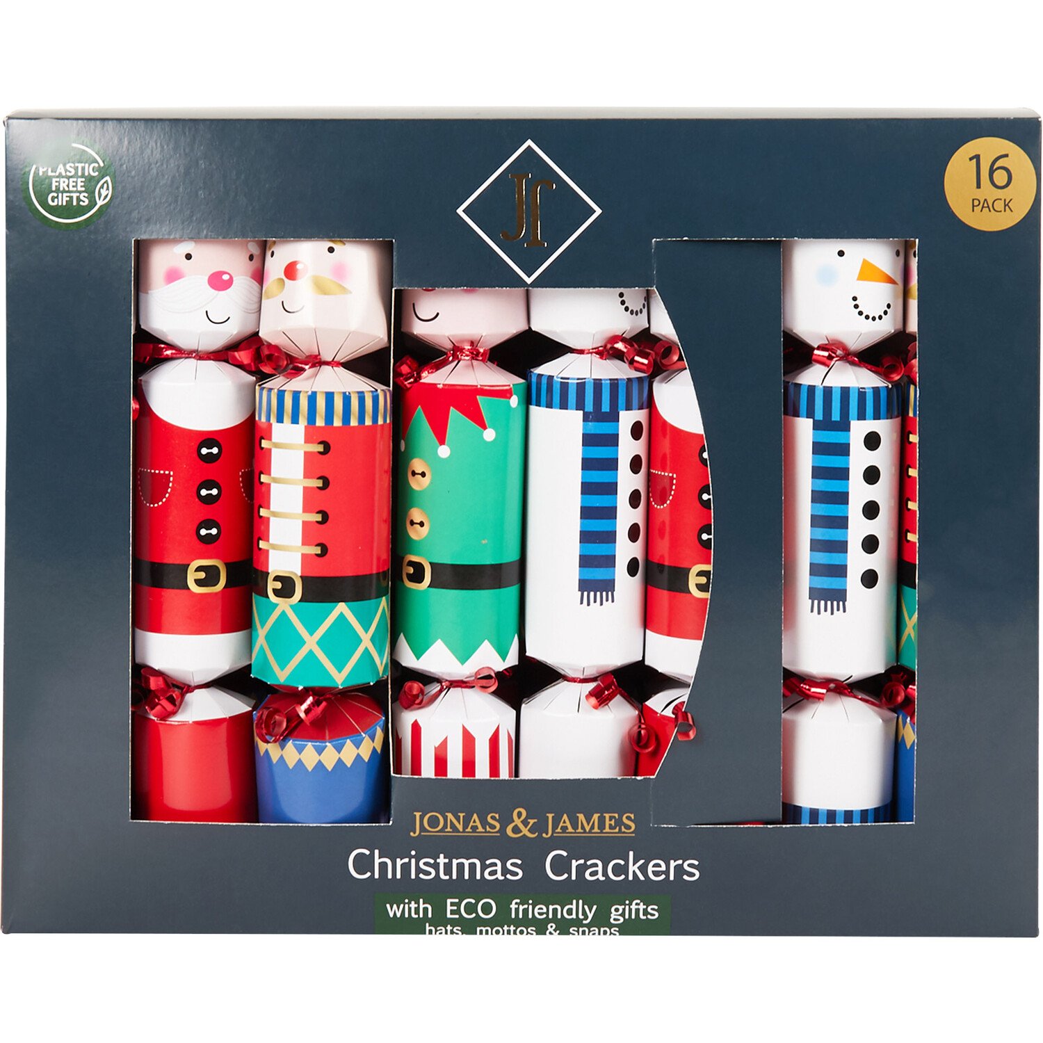 Spread festive cheer and joy with your loved ones using the Pack of 16 Santa and Friends Crackers. Each cracker comes in a cute and festive design you'll adore. These crackers include an eco-friendly gift, a hat, a motto and that signature snap.
