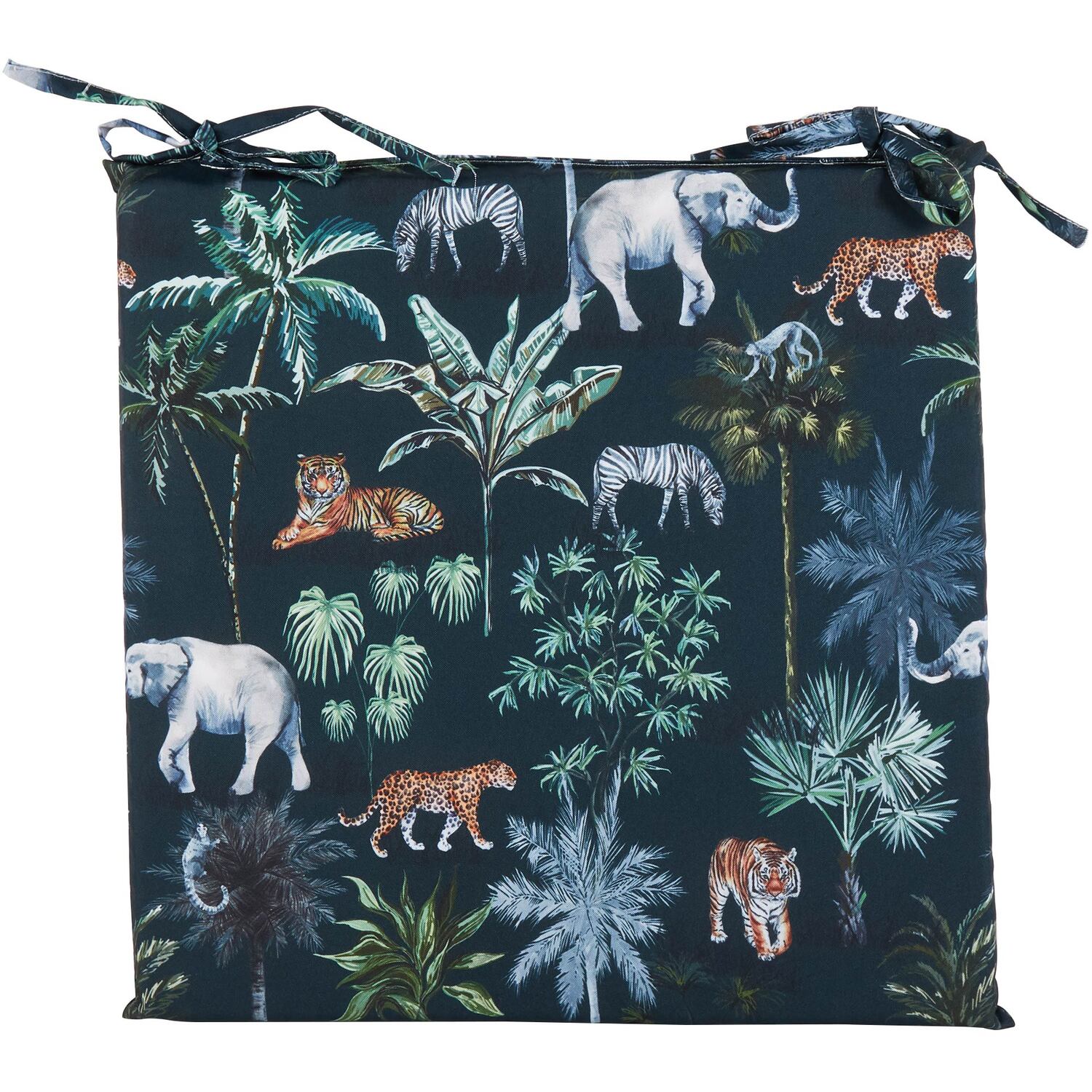 Our Pack of 2 Boho Jungle Seat Pads is a quick and easy way to give your dining space a little style and character. It's printed with a gorgeous jungle animal design surrounded by beautiful foliage for an eye-catching look. It's soft, comfortable, and ideal for dining chairs or use on the floor at your garden party or BBQ. You can pair this set of cushions with other items from the Boho Jungle collection for a cohesive look in your kitchen or garden.