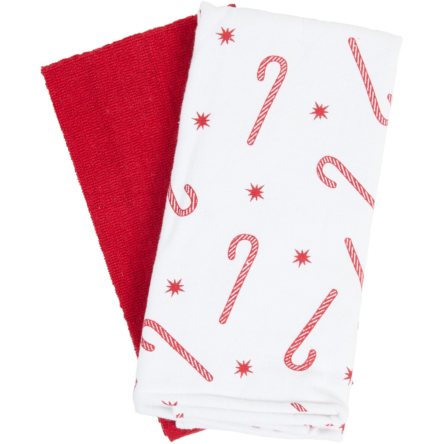 This Pack of 2 Candy Cane Tea Towels is perfect for any kitchen. Inspired by super sweet candy canes, these towels feature one with a solid red design and another printed with charming candy canes. They're made from a blend of polyester and cotton for great absorption and comfort - ideal for drying dishes, hands, countertops, and more. They're sure to come in handy when you're cooking your Christmas dinner this year.