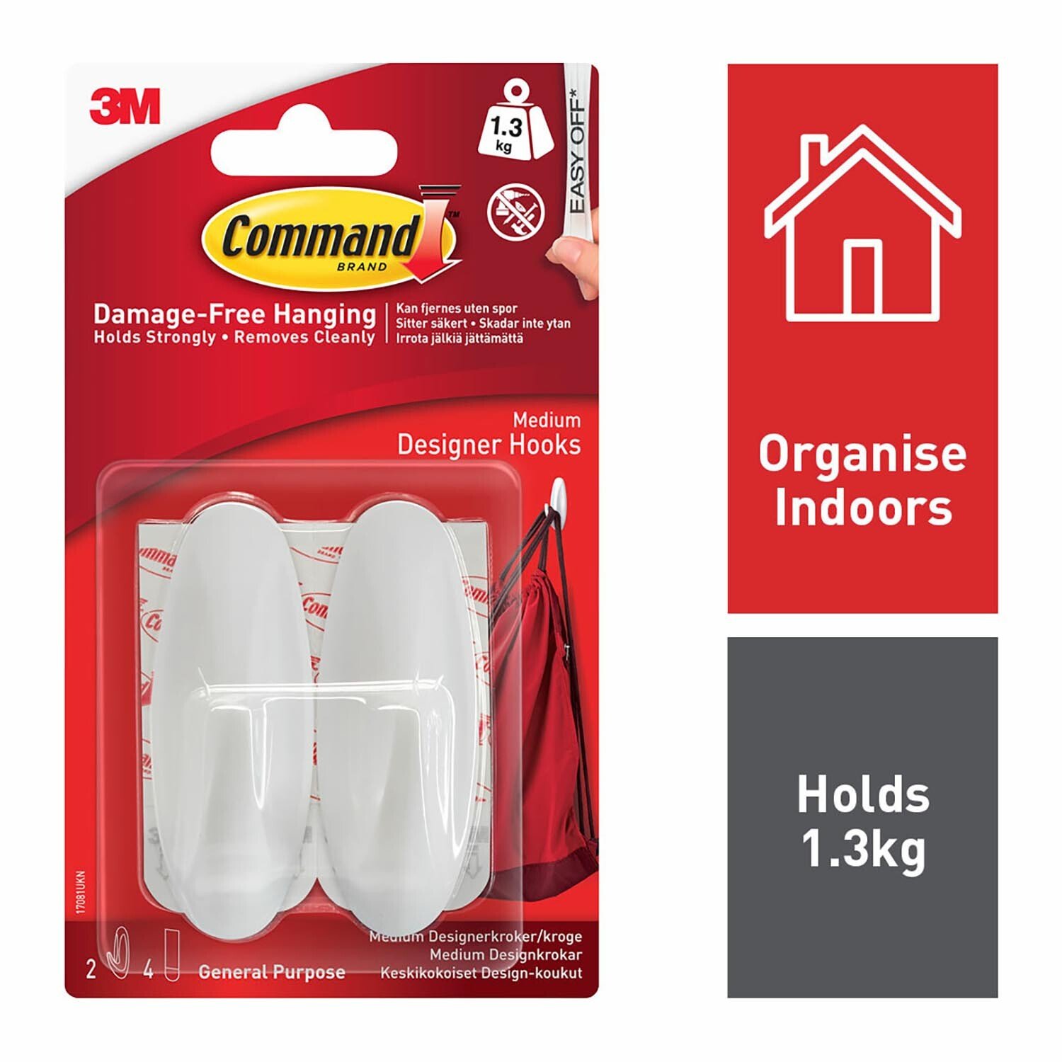 This Pack Of 2 Command Medium Oval Hooks provide a damage-free hanging solution for coats and bags up to 1kg in your home or office. Easy to apply without nails or screws, they remove cleanly without causing damage to your walls.