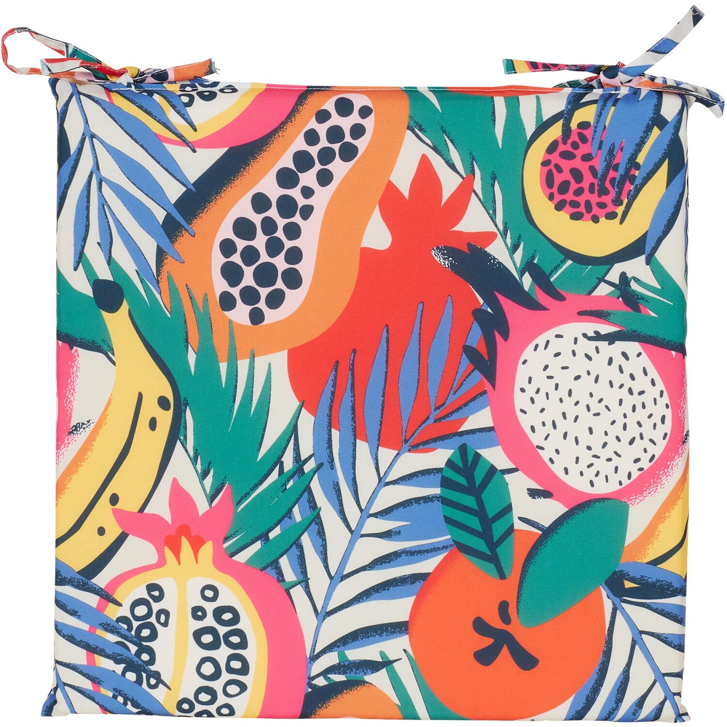 This Pack of 2 Honolulu Seat Pads will add a splash of colour to your dining chairs this summer. Perfect for any home, the vibrant, tropical fruit design of these pads will uplift your space and are both practical and comfortable. Suitable for use on dining chairs or on the floor during picnics and BBQs, the seat cushions are finished with ties for a secure fit.