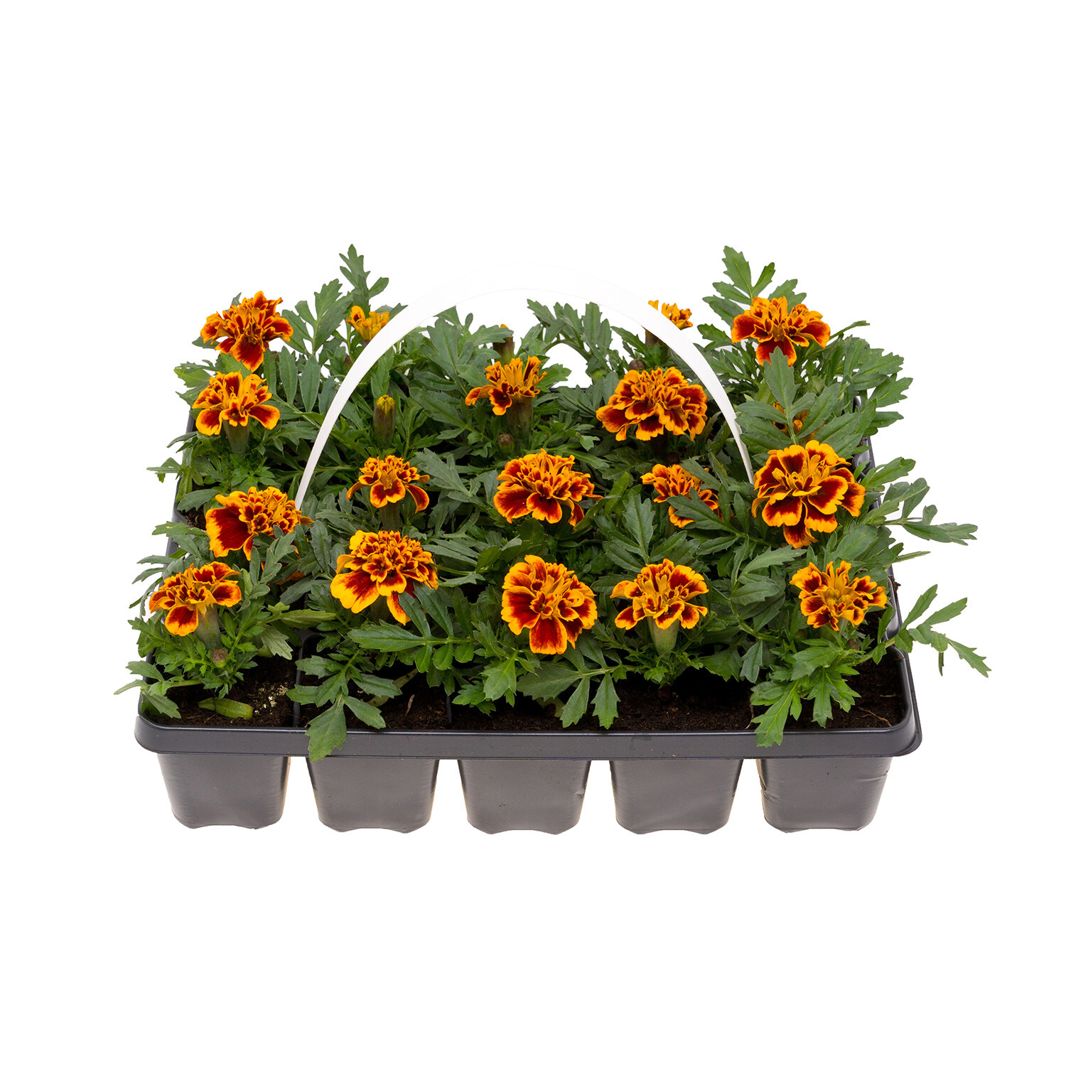 This Pack of 20 Tagetes Bedding Plants is excellent for adding a splash of colour to beds, borders, containers or hanging baskets. Featuring an abundance of double-crested flowers with red petals and golden-yellow edges. This stunning plant is a fantastic addition to your garden and is guaranteed to impress.