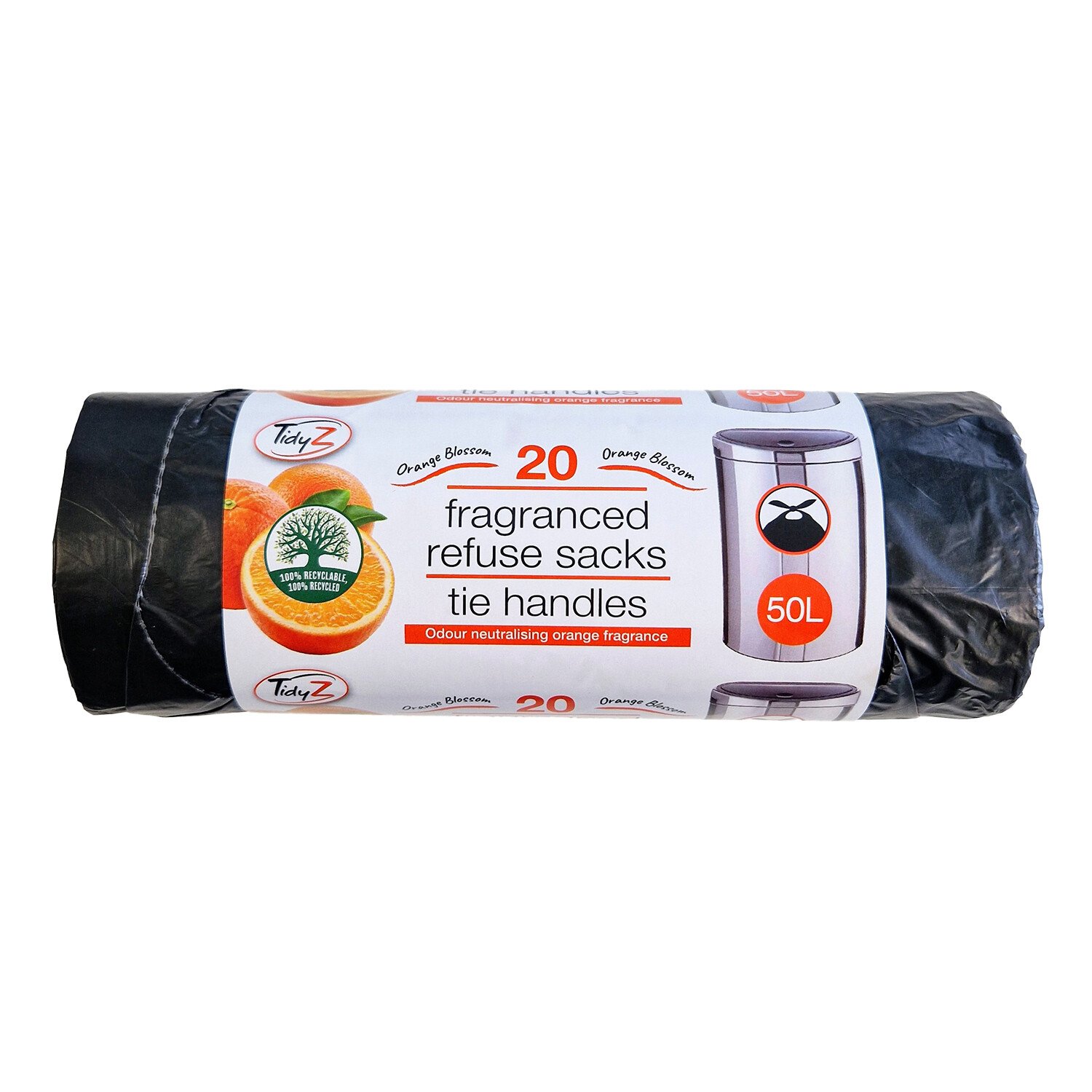 With increased durability and tear resistance, this Pack of 20 Tidyz Refuse Sacks with Tie Handle 50L is essential for your home. Each sack boasts a large capacity of 50L, making them perfect for families or on-the-go rubbish disposal. The convenient handles allow you to easily secure your waste, while the refreshing orange scent prevents unpleasant odours. Keep your home clean and fresh with these reliable and practical sacks.