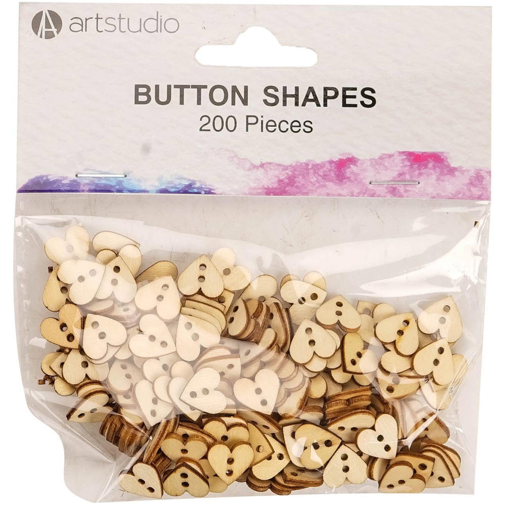 Add adorable details to cards, scrapbooks, textiles projects and more with this Pack of 200 Art Studio Wooden Button Shapes. In a heart shape with a smooth finish, you can either paint and decorate these cute buttons or leave them as they are for a more natural look.