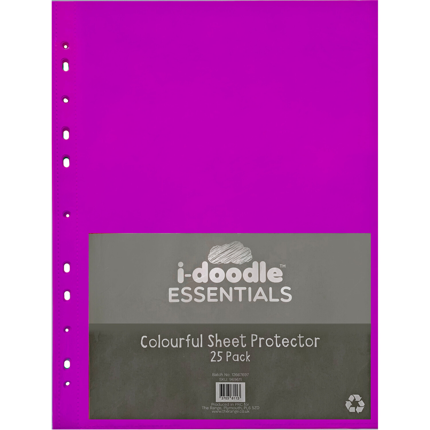 Add a fun touch of colour to your folders whilst keeping your work organised with this Pack of 25 Colourful Sheet Protectors. Available in an assortment of bright colours, these sheet protectors feature 11 holes making it easy to add into folders to keep all your work in one place.