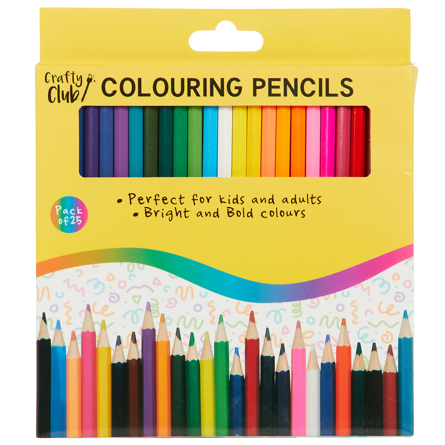 Spark your little one's creativity with the Pack of 25 Colouring Pencils. This set offers a variety of vibrant colours, including rare skin tones, neon, and metallic shades. Creamy and blendable, these pencils are made with sturdy, break-resistant wood and bonded lead, providing a comfortable grip for extended use. With this set, let your child unleash their imagination and colour to their heart's content.