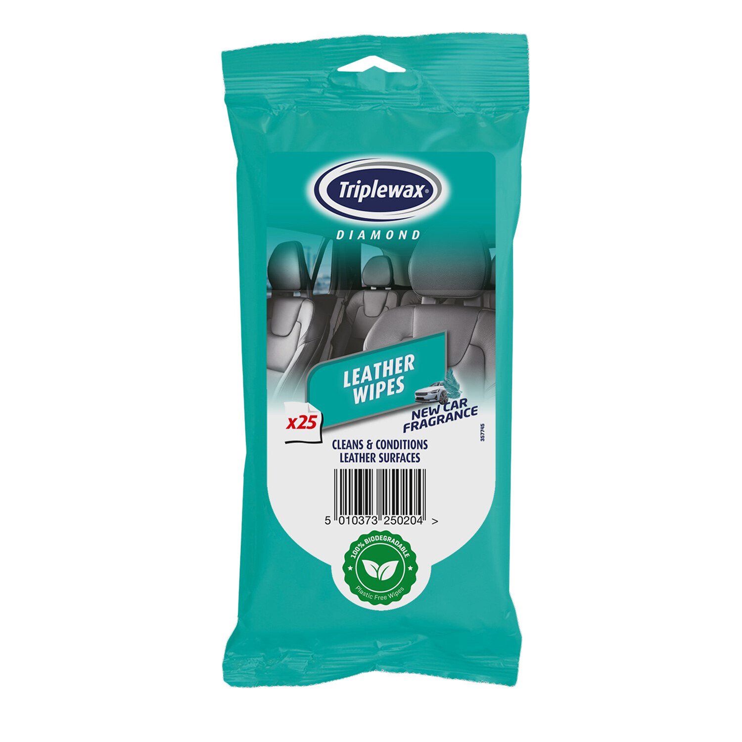 Keep your car looking and smelling great with the Pack of 25 Triplewax Diamond Leather Wipes. Specifically designed for leather surfaces, these wipes are the ideal solution for keeping your car in perfect, pristine condition. They clean, protect, and shine any leather car interiors without staining and leave a pleasant fresh leather aroma. The wipes ensure your car stays fresh for longer, making them essential for maintaining a pristine interior effortlessly.