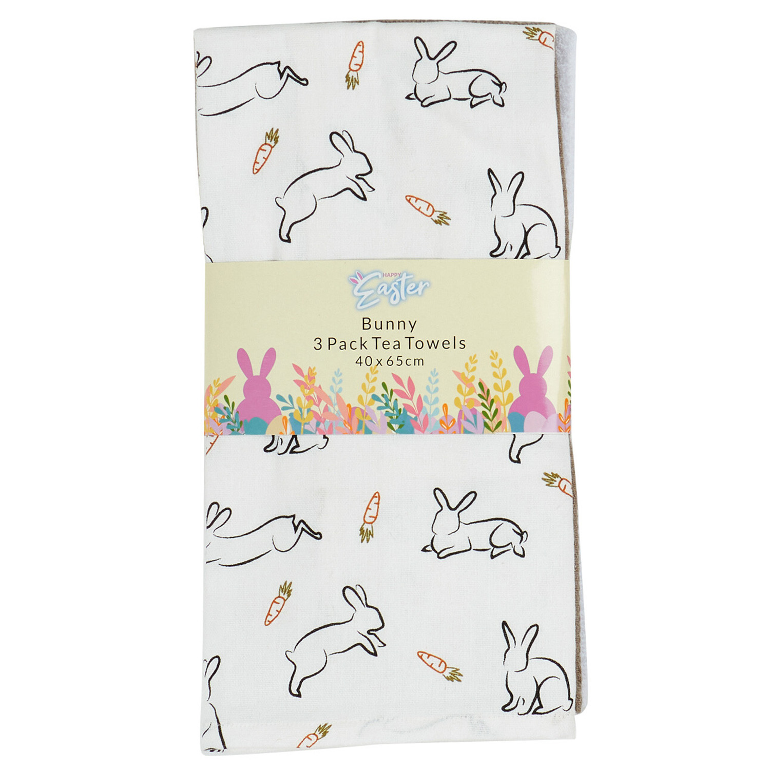 The Pack of 3 Bunny Tea Towels is the perfect addition to your kitchen this spring. The tea towels have an attractive spring-inspired design with bunny prints, carrots, and coordinating earthy tones of beige and white. They're perfect for drying dishes, surfaces, and your hands, and will look wonderful amongst your kitchen and dining decor.