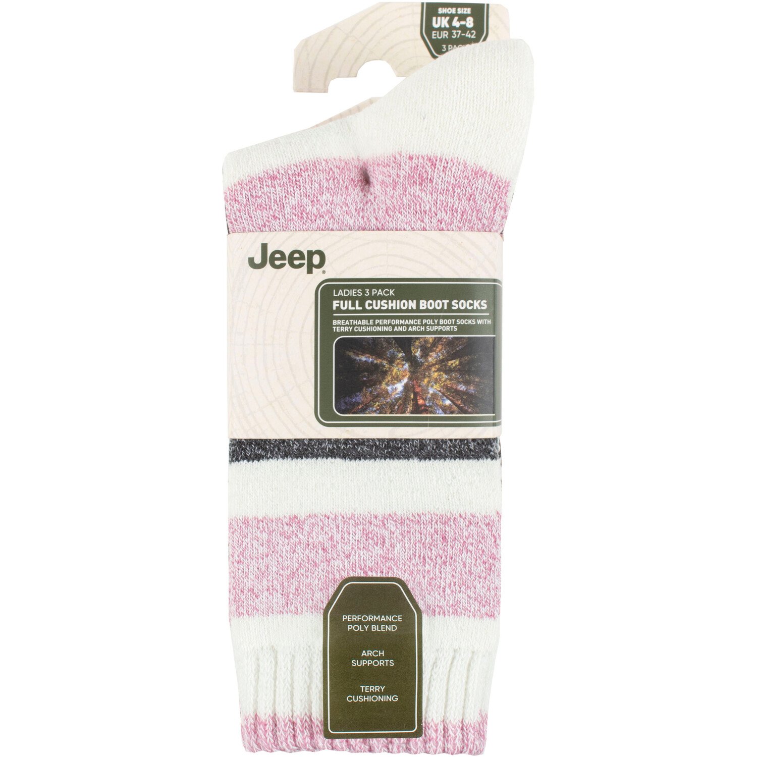 Introducing this Pack of 3 Ladies Jeep Supersoft Boot Socks, not only do they add style and colour to your boots but also offer extra comfort. Featuring a vibrant pink colour and a cosy feel, these socks feature a padded texture that is excellent for absorbing everyday effects and impacts caused by activities like hiking and running.