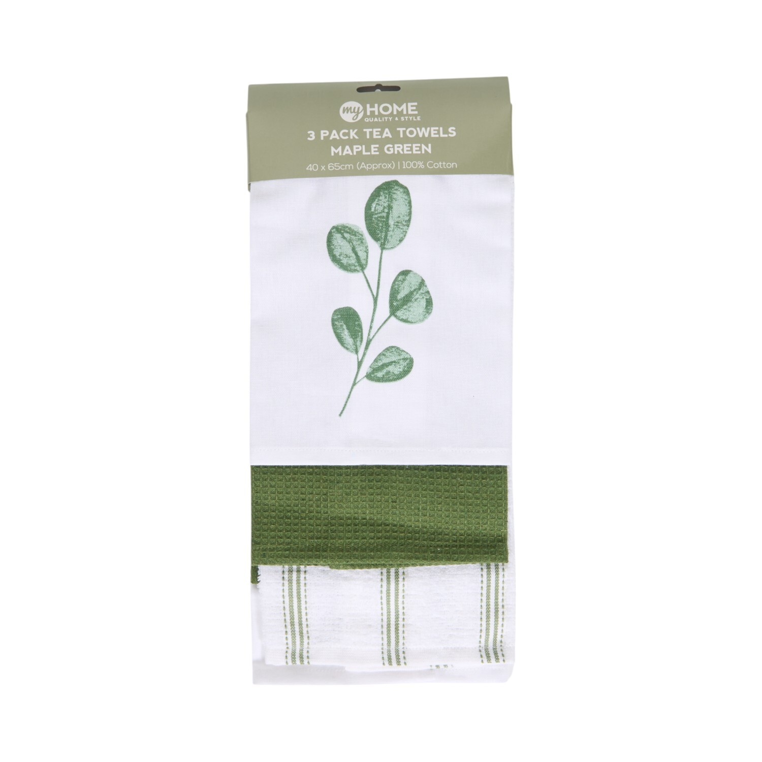 Tackle wiping tasks effortlessly with the Pack of 3 Maple Green Tea Towels. Made from pure, absorbent cotton, these tea towels are designed to handle all your drying and cleaning tasks with ease. Each towel features a soft green hue and attractive designs to make a stylish and practical addition to your home.