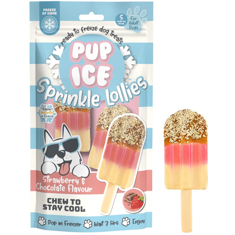 Treat your pup to something cool and refreshing with the Pack of 3 Pup Ice Sprinkle Lollies. These lollies are packed with flavour to offer your dog a delicious treat. With added calcium and prebiotics, they are great for supporting your pet's well-being. Whether you serve them straight from the packet or frozen, they are perfect for keeping your pup cool and happy throughout summer.