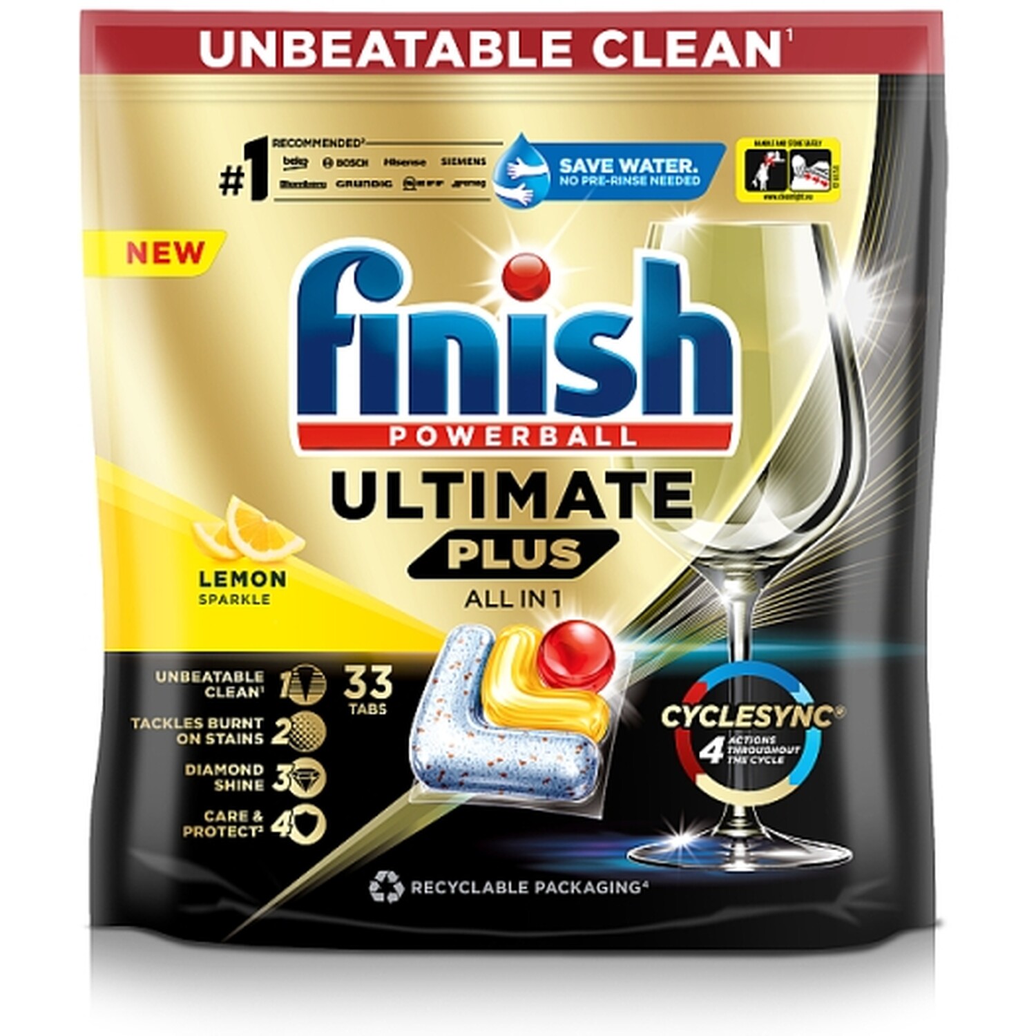 Get advanced clean dishes and glasses with the Pack of 33 Finish Ultimate Plus Dishwasher Tablets Lemon. It provides spotless results the first every time. Powered by Finish Activelift Technology, it targets stubborn 48-hour dried-on stains, eliminating the need for pre-rinsing. Experience a diamond shine with each wash, bringing out the brilliance of your tableware.