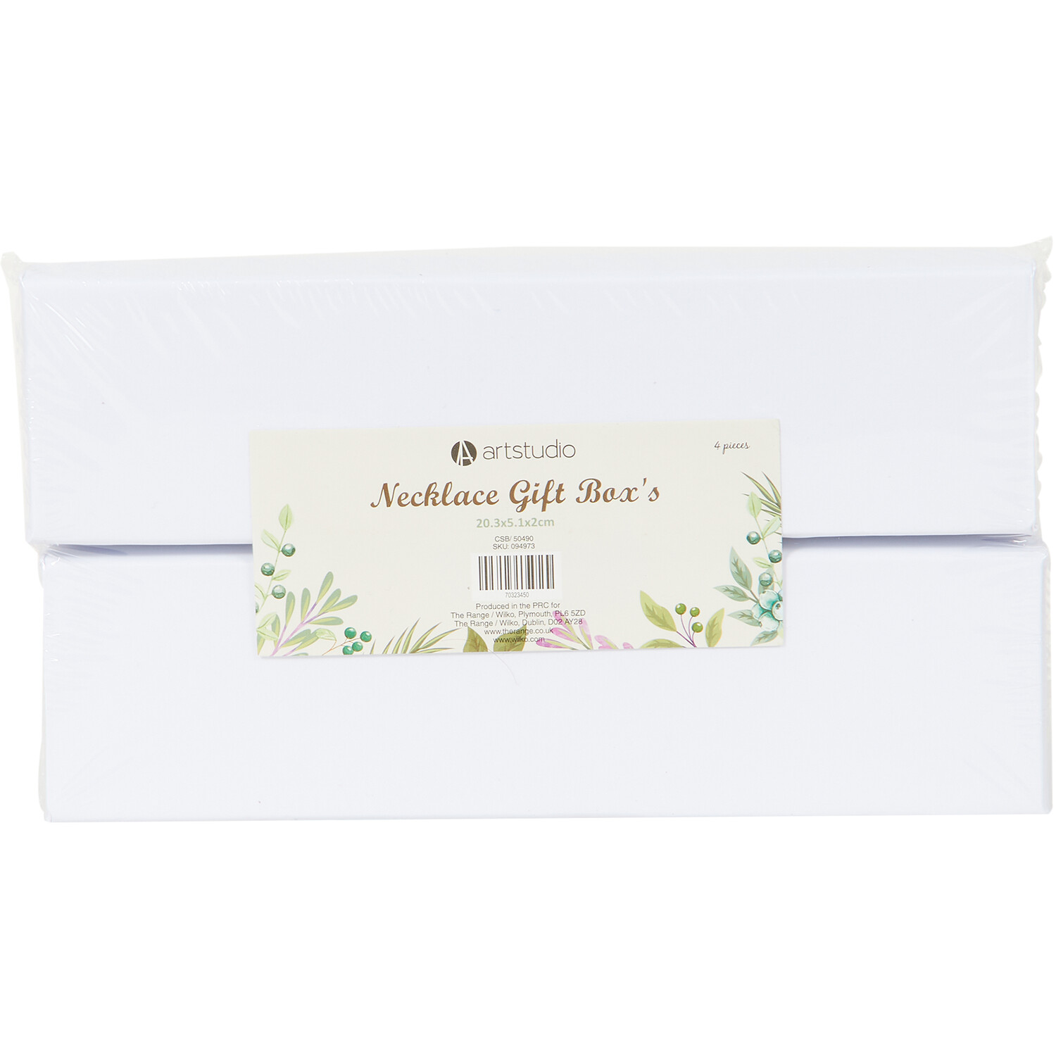 Surprise your loved ones with this Pack of 4 Art Studio Necklace Gift Boxes. These boxes are designed for personalized gifts and offer a canvas for creative expression. Featuring a plain exterior, they can be adorned with paint, ink, or stamps. Ideal for small jewellery businesses, they can use them to pack and deliver their products.
