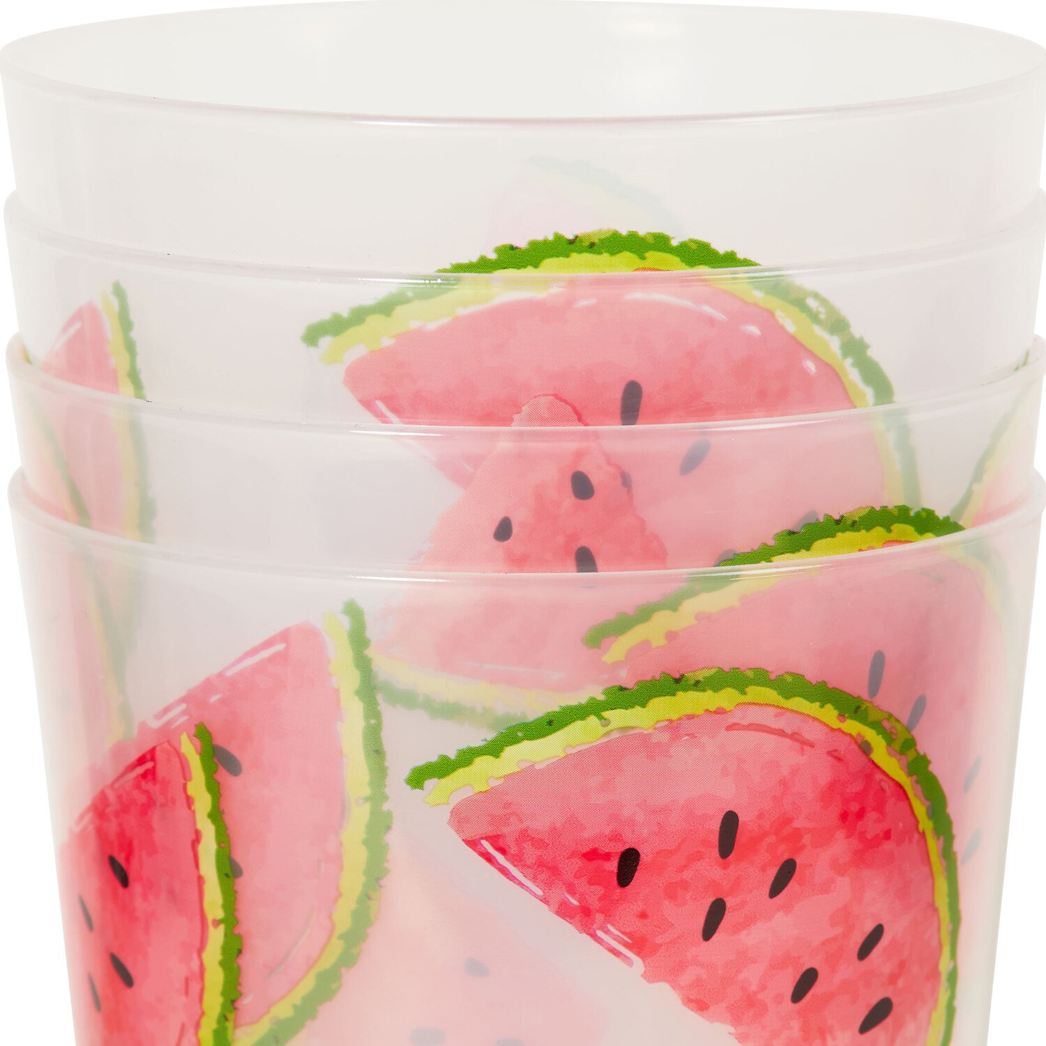 Available in two designs, our Pack of 4 Fruity Tumblers is sure to add a fun twist to your outdoor dining. The tumblers are printed with either a watermelon or lemon design for a pop of colour and are ideal for all your favourite cold drinks this spring and summer. These plastic cups offer a tropical feel and are perfect for garden parties, BBQs, picnics, and more.